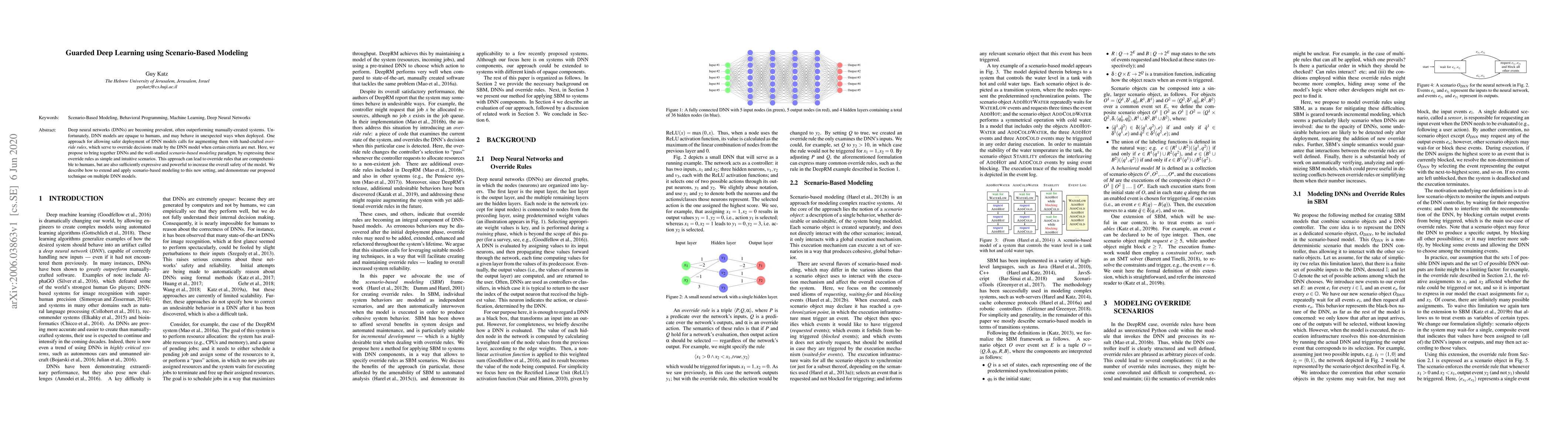 Deep neural networks (DNNs) are becoming prevalent, often outperforming manually-created systems. Unfortunately, DNN models are opaque to humans, and may behave in unexpected ways when deployed. One approach for allowing safer deployment of DNN models calls for augmenting them with hand-crafted override rules, which serve to override decisions made by the DNN model when certain criteria are met. Here, we propose to bring together DNNs and the well-studied scenario-based modeling paradigm, by expressing these override rules as simple and intuitive scenarios. This approach can lead to override rules that are comprehensible to humans, but are also sufficiently expressive and powerful to increase the overall safety of the model. We describe how to extend and apply scenario-based modeling to this new setting, and demonstrate our proposed technique on multiple DNN models.