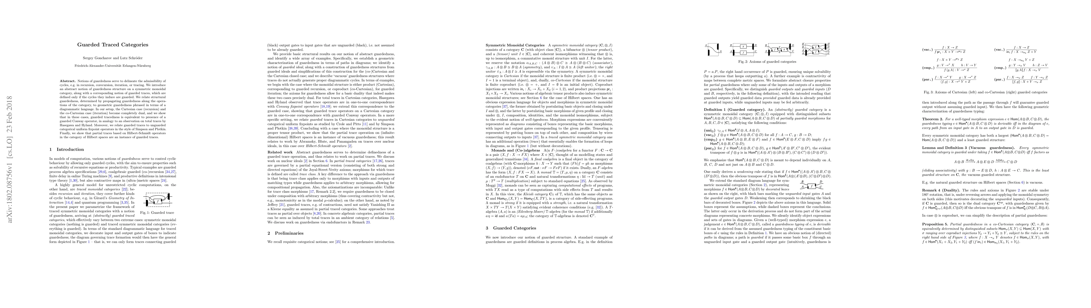Notions of guardedness serve to delineate the admissibility of cycles, e.g. in recursion, corecursion, iteration, or tracing. We introduce an abstract notion of guardedness structure on a symmetric monoidal category, along with a corresponding notion of guarded traces, which are defined only if the cycles they induce are guarded. We relate structural guardedness, determined by propagating guardedness along the operations of the category, to geometric guardedness phrased in terms of a diagrammatic language. In our setup, the Cartesian case (recursion) and the co-Cartesian case (iteration) become completely dual, and we show that in these cases, guarded tracedness is equivalent to presence of a guarded Conway operator, in analogy to an observation on total traces by Hasegawa and Hyland. Moreover, we relate guarded traces to unguarded categorical uniform fixpoint operators in the style of Simpson and Plotkin. Finally, we show that partial traces based on Hilbert-Schmidt operators in the category of Hilbert spaces are an instance of guarded traces.