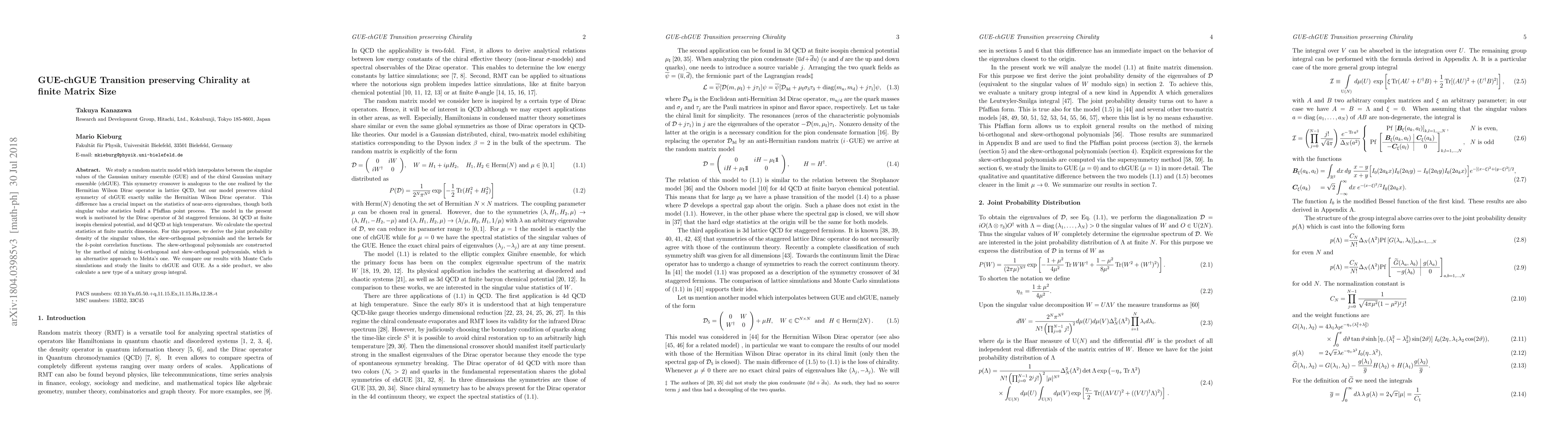 This paper investigates a random matrix model that transitions between the Gaussian unitary ensemble (GUE) and the chiral Gaussian unitary ensemble (chGUE), preserving chiral symmetry unlike the Hermitian Wilson Dirac operator. The study calculates spectral statistics and derives the joint probability density of singular values, comparing results with Monte Carlo simulations.