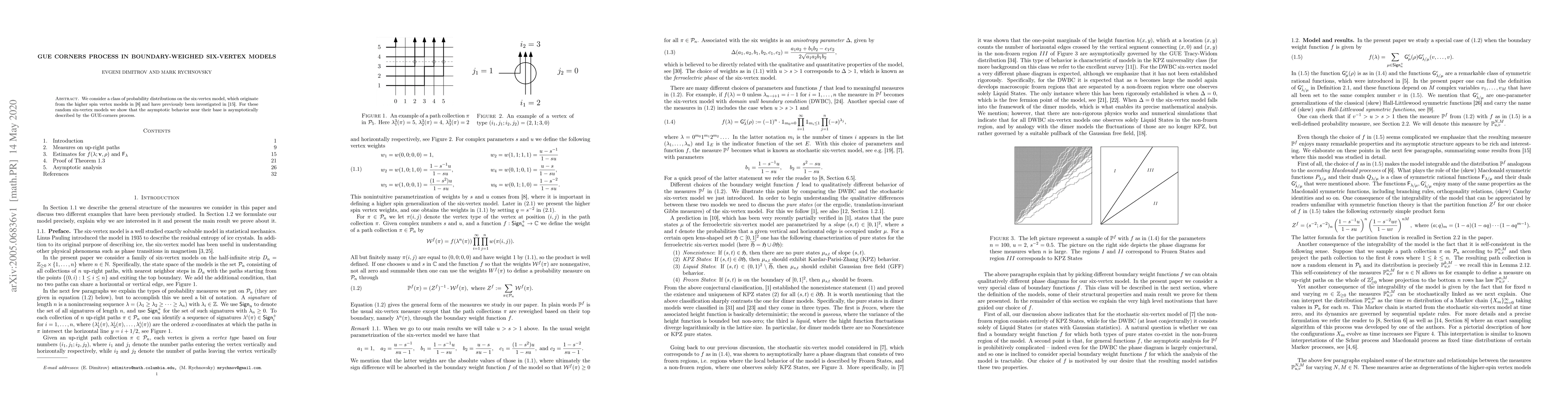 This paper investigates probability distributions in six-vertex models derived from higher spin vertex models, demonstrating that their asymptotic behavior near the base is described by the GUE-corners process. This connection provides insights into the statistical properties of these models.