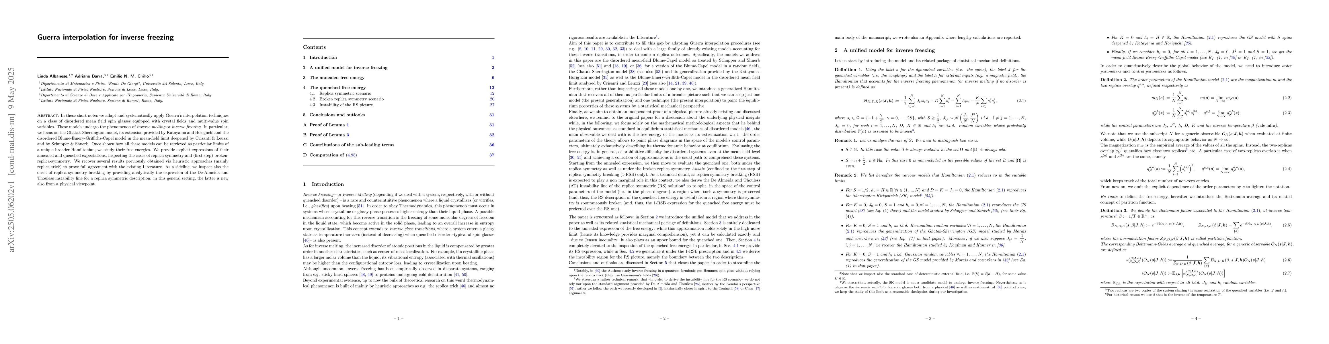 Researchers apply Guerra interpolation techniques to study disordered spin glasses with crystal fields and multi-value spin variables, recovering previous results and providing new insights on inverse freezing and replica symmetry breaking.