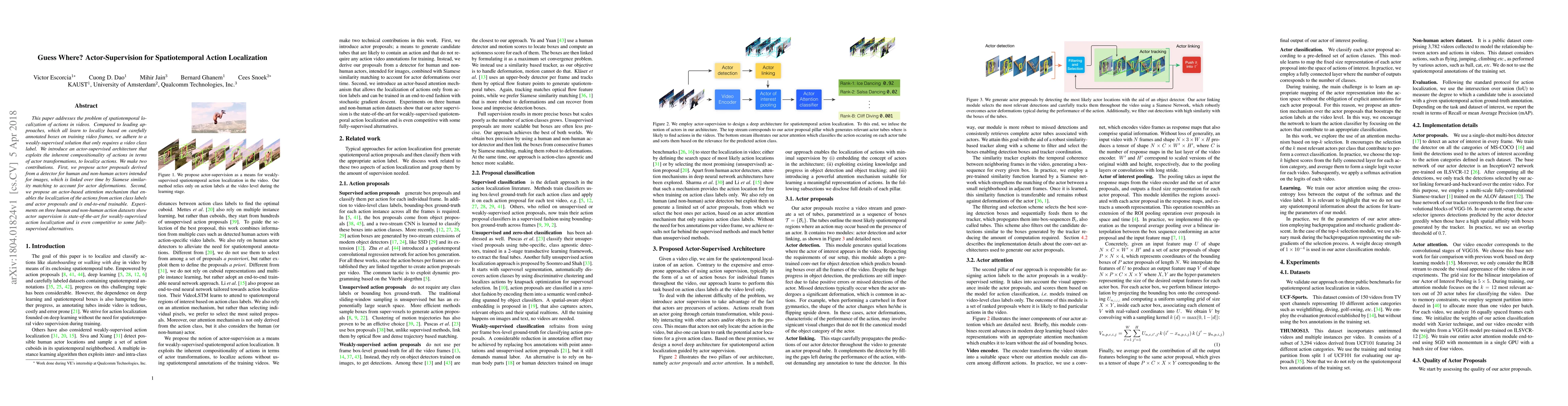 This paper addresses the problem of spatiotemporal localization of actions in videos. Compared to leading approaches, which all learn to localize based on carefully annotated boxes on training video frames, we adhere to a weakly-supervised solution that only requires a video class label. We introduce an actor-supervised architecture that exploits the inherent compositionality of actions in terms of actor transformations, to localize actions. We make two contributions. First, we propose actor proposals derived from a detector for human and non-human actors intended for images, which is linked over time by Siamese similarity matching to account for actor deformations. Second, we propose an actor-based attention mechanism that enables the localization of the actions from action class labels and actor proposals and is end-to-end trainable. Experiments on three human and non-human action datasets show actor supervision is state-of-the-art for weakly-supervised action localization and is even competitive to some fully-supervised alternatives.