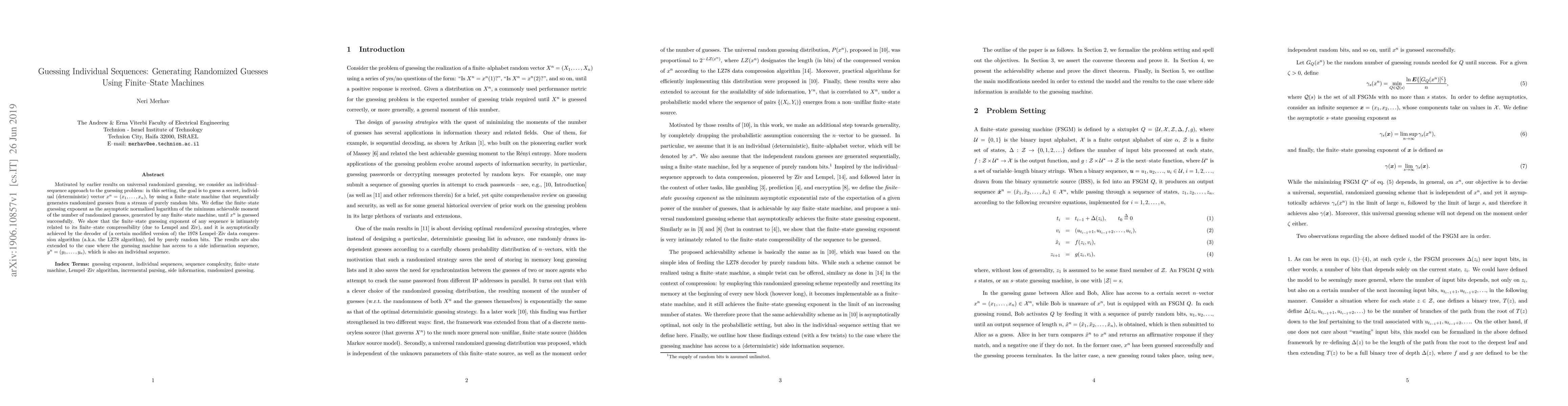 Motivated by earlier results on universal randomized guessing, we consider an individual-sequence approach to the guessing problem: in this setting, the goal is to guess a secret, individual (deterministic) vector $x^n=(x_1,\ldots,x_n)$, by using a finite-state machine that sequentially generates randomized guesses from a stream of purely random bits. We define the finite-state guessing exponent as the asymptotic normalized logarithm of the minimum achievable moment of the number of randomized guesses, generated by any finite-state machine, until $x^n$ is guessed successfully. We show that the finite-state guessing exponent of any sequence is intimately related to its finite-state compressibility (due to Lempel and Ziv), and it is asymptotically achieved by the decoder of (a certain modified version of) the 1978 Lempel-Ziv data compression algorithm (a.k.a. the LZ78 algorithm), fed by purely random bits. The results are also extended to the case where the guessing machine has access to a side information sequence, $y^n=(y_1,\ldots,y_n)$, which is also an individual sequence.
