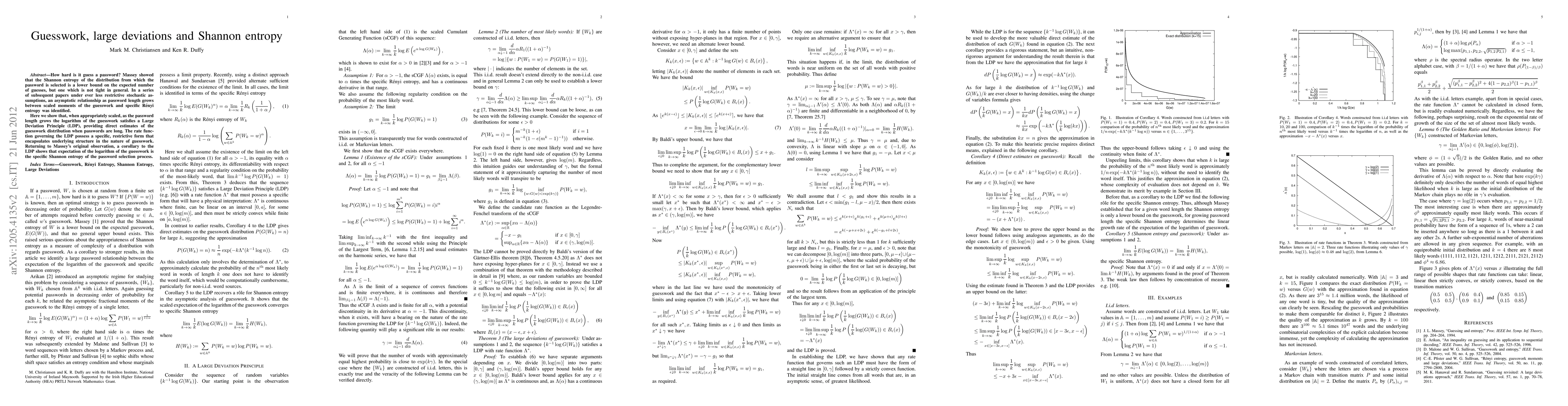 How hard is it guess a password? Massey showed that that the Shannon entropy of the distribution from which the password is selected is a lower bound on the expected number of guesses, but one which is not tight in general. In a series of subsequent papers under ever less restrictive stochastic assumptions, an asymptotic relationship as password length grows between scaled moments of the guesswork and specific R\'{e}nyi entropy was identified. Here we show that, when appropriately scaled, as the password length grows the logarithm of the guesswork satisfies a Large Deviation Principle (LDP), providing direct estimates of the guesswork distribution when passwords are long. The rate function governing the LDP possess a specific, restrictive form that encapsulates underlying structure in the nature of guesswork. Returning to Massey's original observation, a corollary to the LDP shows that expectation of the logarithm of the guesswork is the specific Shannon entropy of the password selection process.