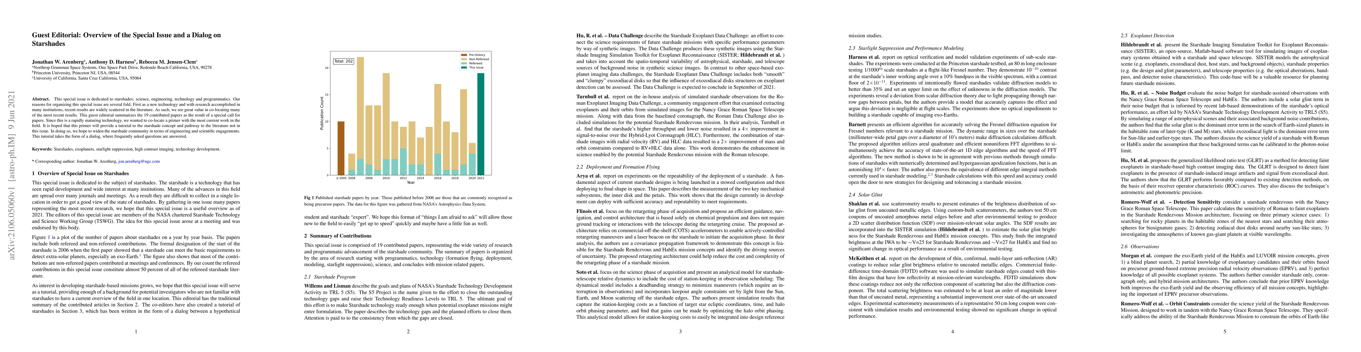 The research methodology involved a special issue dedicated to starshades, collecting and summarizing recent results from various institutions. It includes a primer in the form of a dialog addressing frequently asked questions about starshade concepts and design.