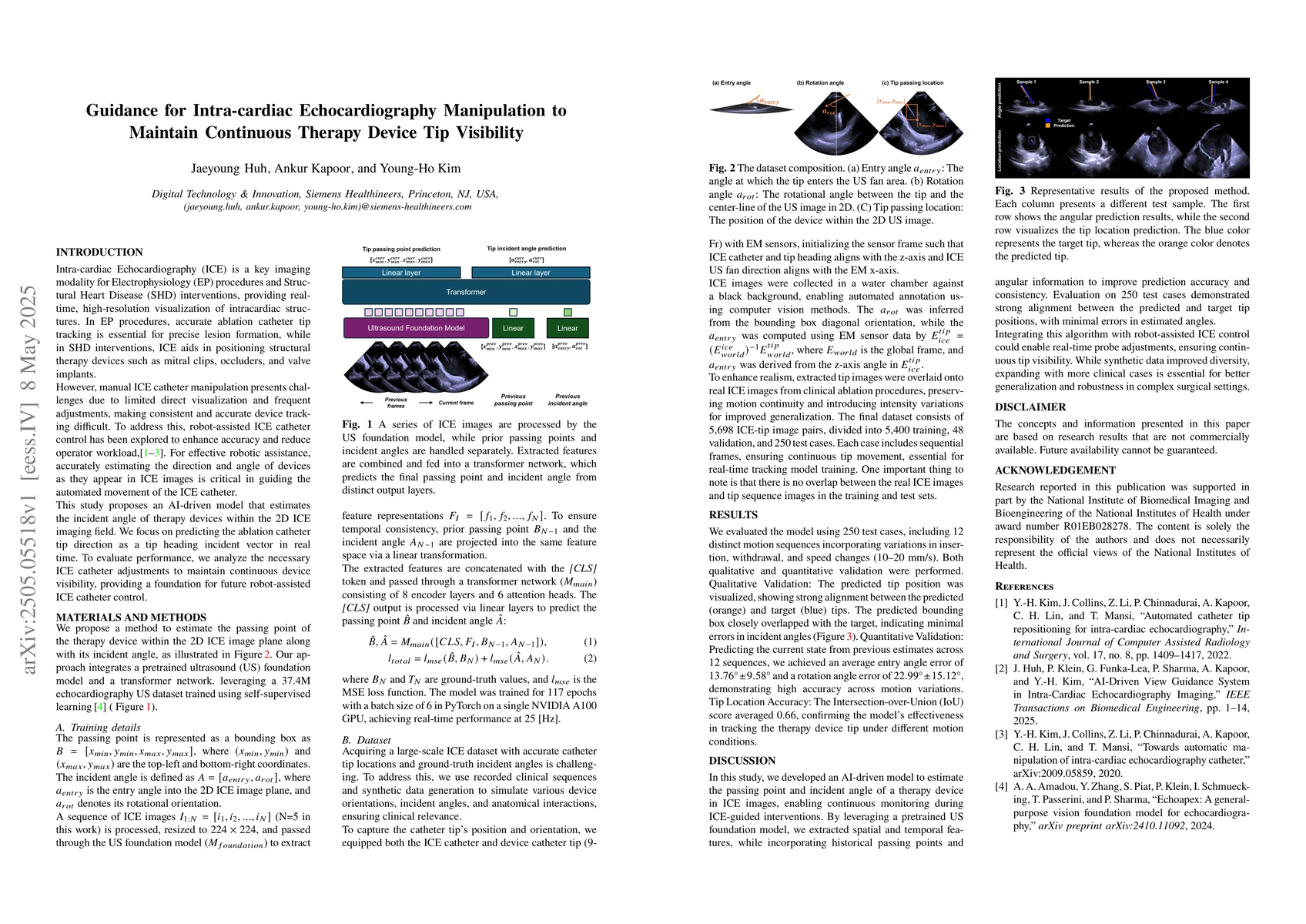 Researchers developed an AI-driven tracking model to maintain visibility of therapy device tips during intra-cardiac echocardiography catheter manipulation, reducing operator workload and improving consistency.