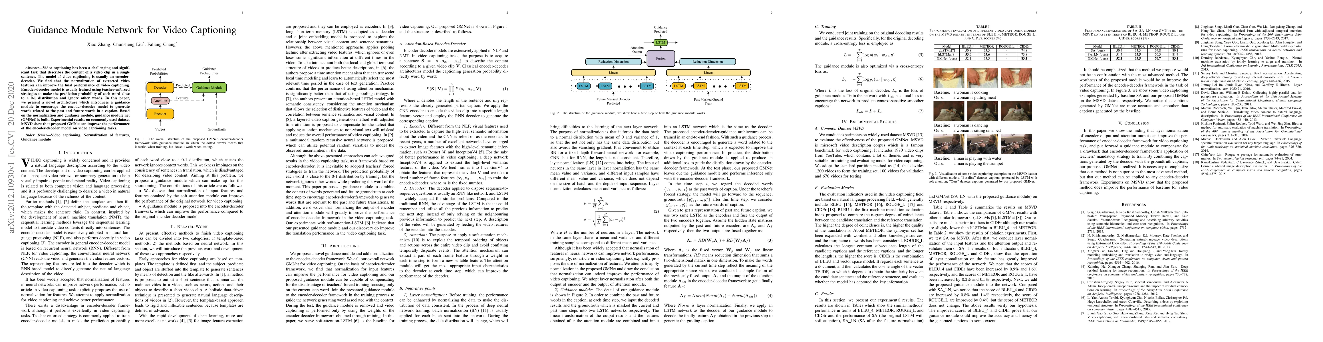 This paper introduces a Guidance Module Network (GMNet) for video captioning, which incorporates a normalization of video features and a guidance module to enhance the encoder-decoder model. Experimental results on the MSVD dataset demonstrate that GMNet improves the performance of video captioning.