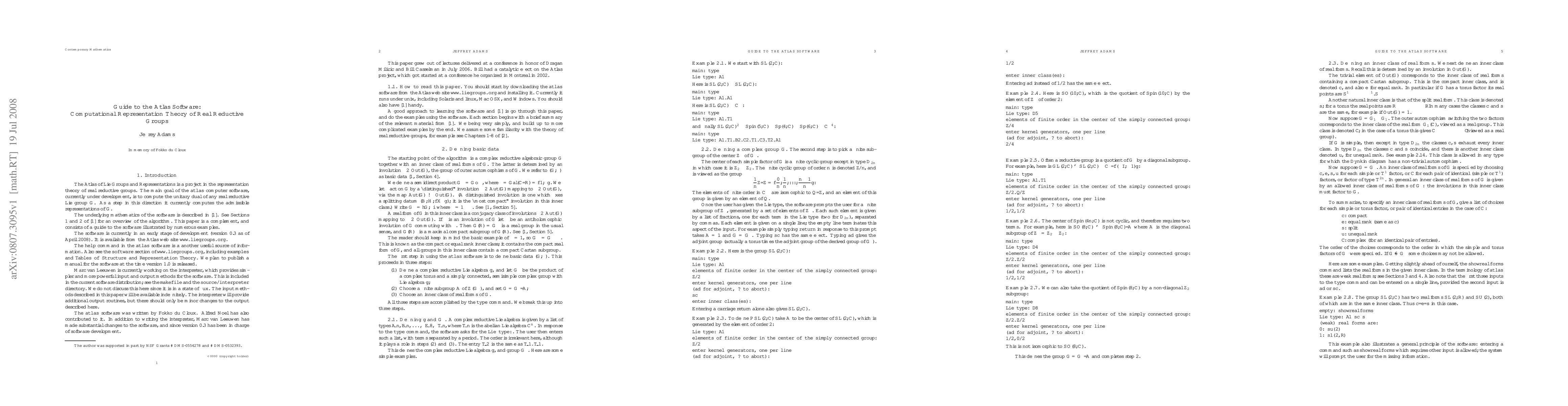 This paper introduces the Atlas software for computational representation theory of real reductive groups, providing users with basic commands and examples to navigate the software. For a deeper mathematical understanding, refer to the arXiv paper Algorithms for Representation Theory of Real Reductive Groups.