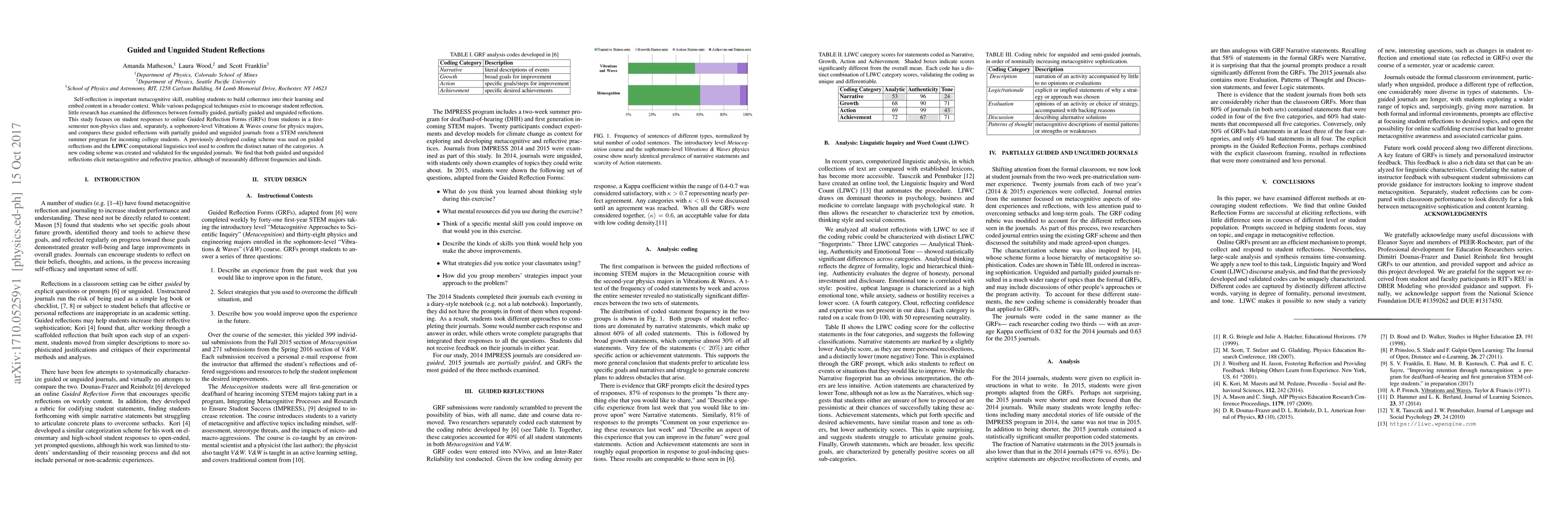 This study compares reflections from students across different types of reflection prompts: guided, partially guided, and unguided. Findings show that while all types elicit metacognitive and reflective practice, the nature and frequency of these reflections vary significantly depending on the level of guidance provided.