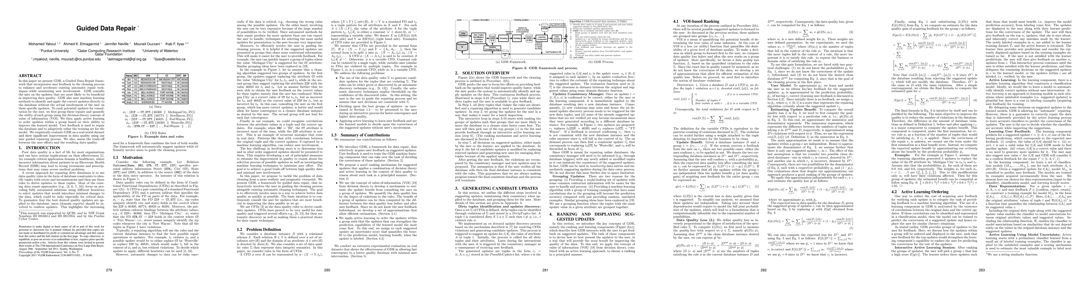 In this paper we present GDR, a Guided Data Repair framework that incorporates user feedback in the cleaning process to enhance and accelerate existing automatic repair techniques while minimizing user involvement. GDR consults the user on the updates that are most likely to be beneficial in improving data quality. GDR also uses machine learning methods to identify and apply the correct updates directly to the database without the actual involvement of the user on these specific updates. To rank potential updates for consultation by the user, we first group these repairs and quantify the utility of each group using the decision-theory concept of value of information (VOI). We then apply active learning to order updates within a group based on their ability to improve the learned model. User feedback is used to repair the database and to adaptively refine the training set for the model. We empirically evaluate GDR on a real-world dataset and show significant improvement in data quality using our user guided repairing process. We also, assess the trade-off between the user efforts and the resulting data quality.