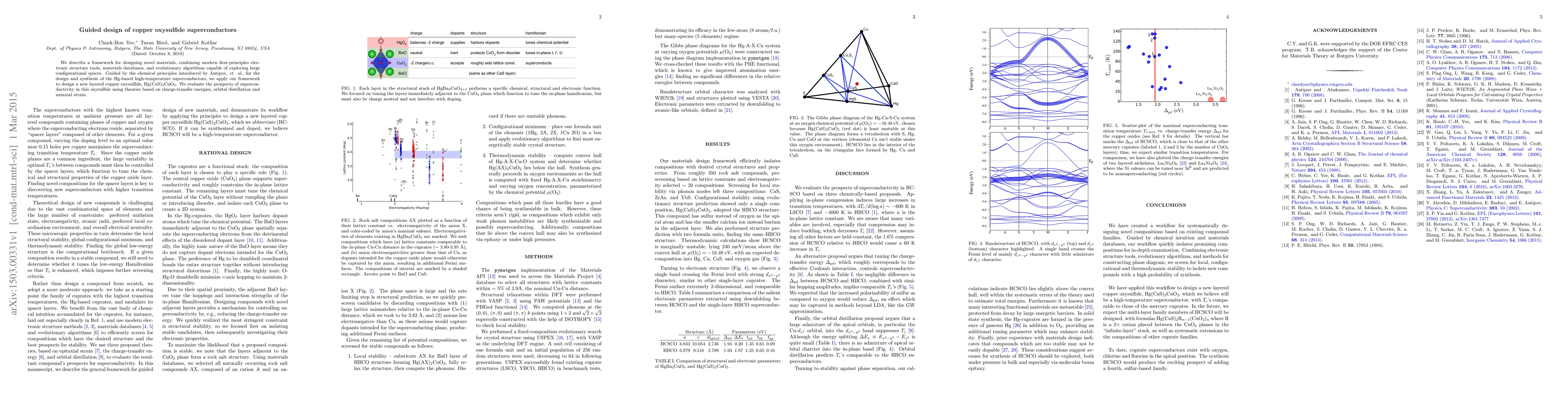 This work introduces a novel, systematic approach to materials design by integrating various computational tools and chemical intuition, demonstrating its effectiveness in proposing a new copper oxysulfide superconductor, Hg(CaS)2CuO2.