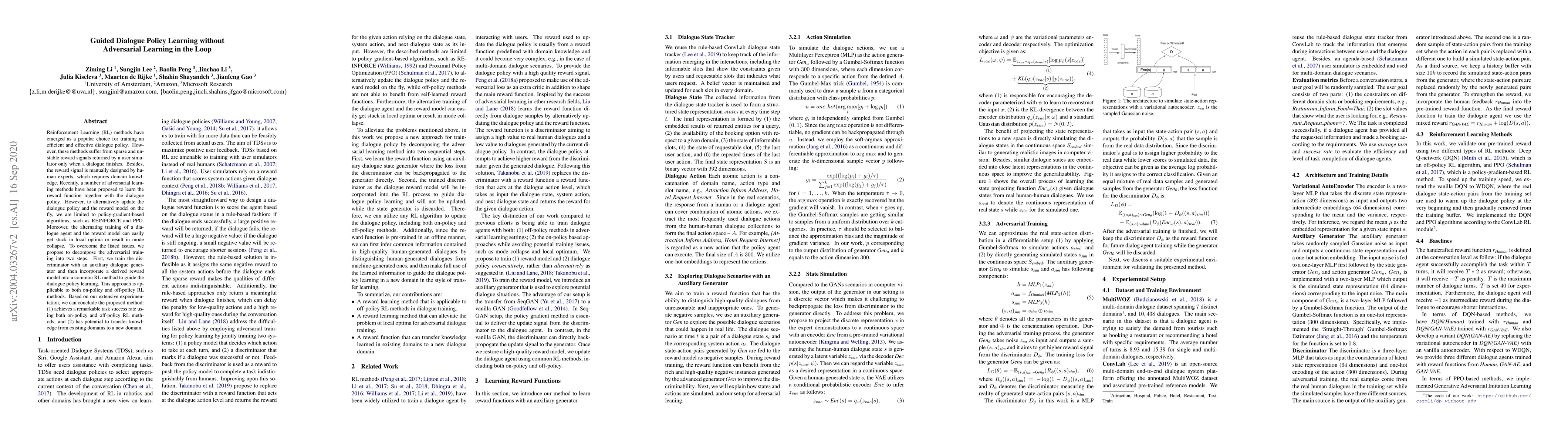 This paper proposes a method for guided dialogue policy learning that avoids adversarial training in the loop, addressing issues of sparse and unstable rewards in reinforcement learning. The approach decomposes adversarial training into a discriminator training phase followed by incorporating a derived reward model into a common RL method, achieving notable task success and domain knowledge transfer.