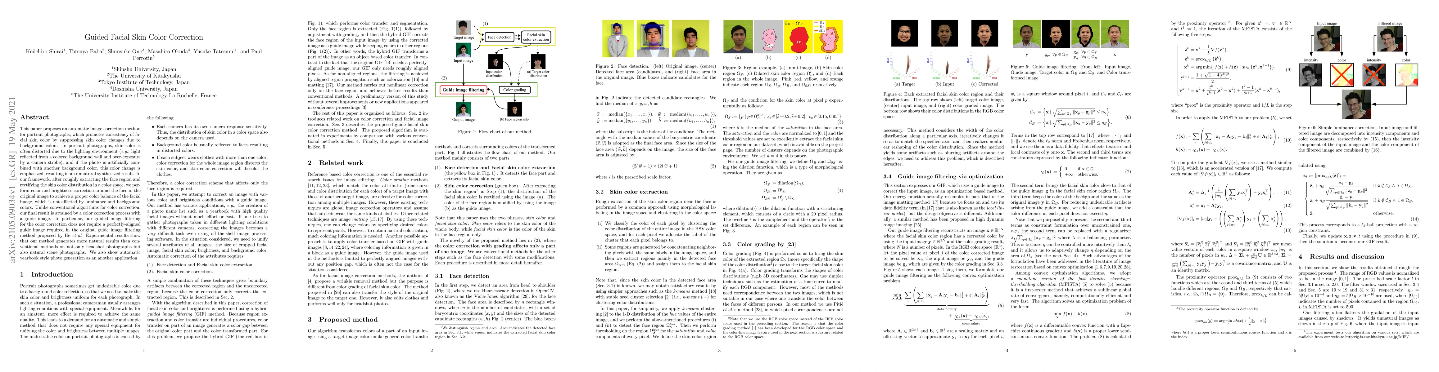 This paper proposes a method to correct facial skin color in portraits by suppressing background colors, producing more natural results than conventional methods. It also generates yearbook-style photos automatically.