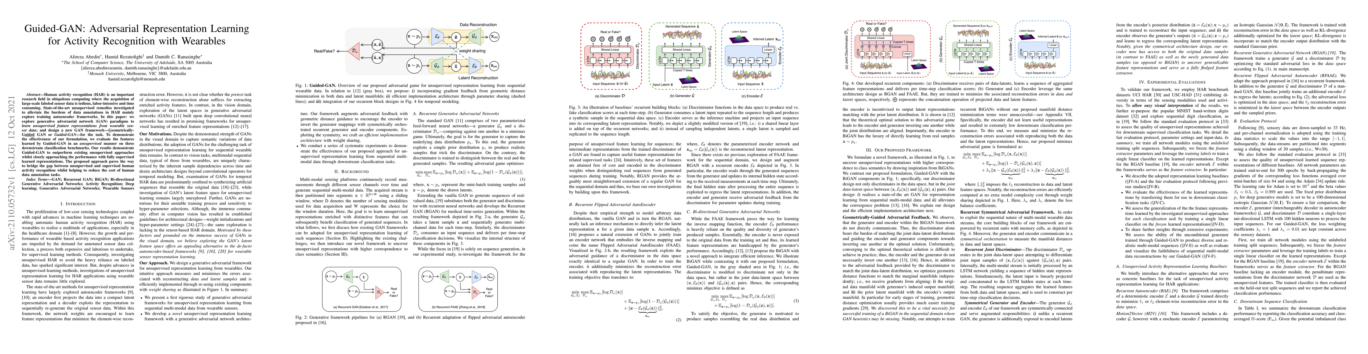 This paper proposes Guided-GAN, a novel GAN framework for learning unsupervised feature representations from wearable sensor data for human activity recognition, demonstrating superior performance compared to existing methods and reducing the need for extensive labeled data.