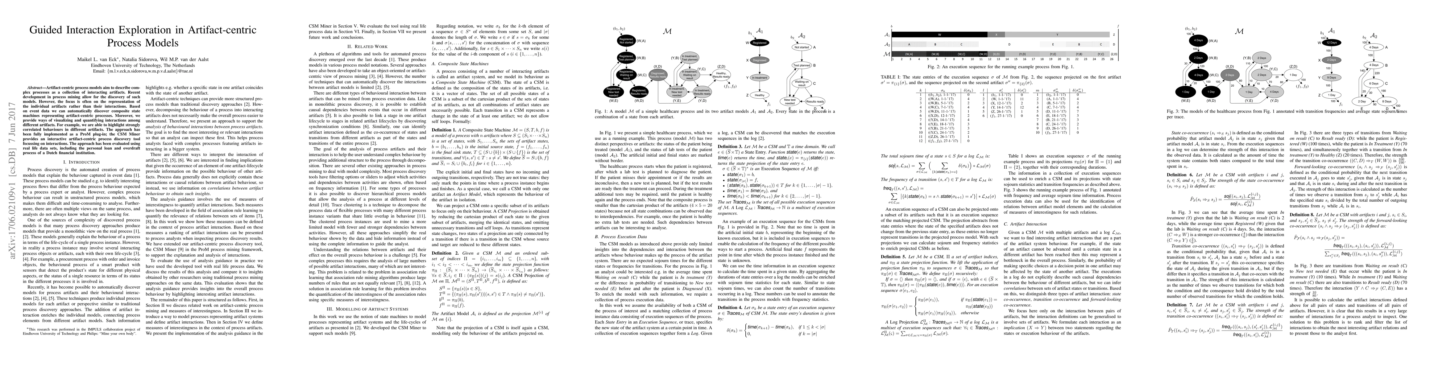 This paper presents a method for discovering and visualizing interactions among artifacts in complex processes using process mining. The CSM Miner plug-in for ProM enables interactive exploration of these interactions, highlighting strongly correlated behaviors, and has been evaluated on real-life datasets from a Dutch financial institution.