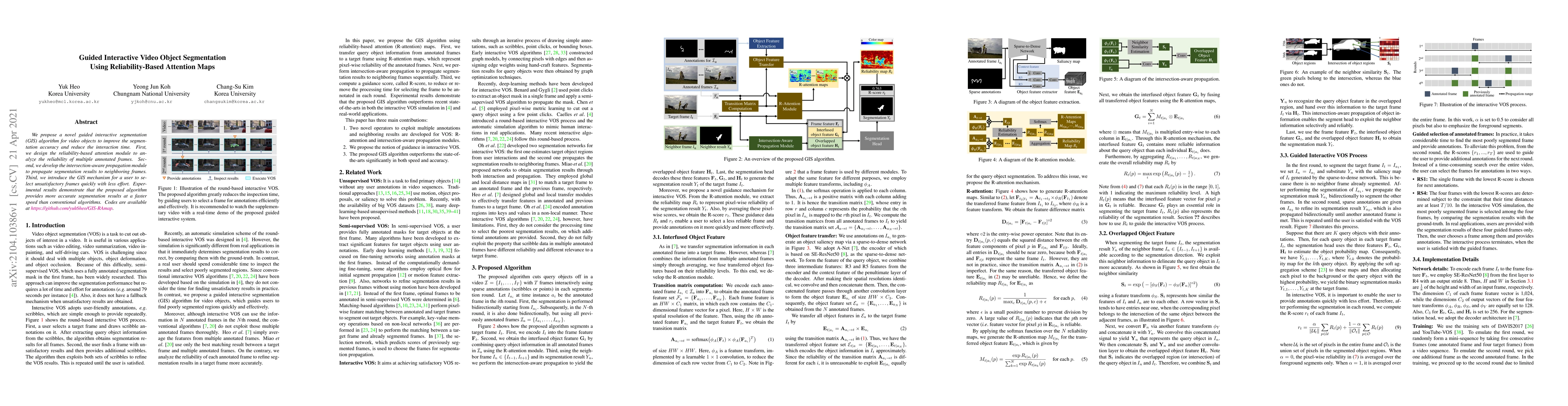 This paper proposes a guided interactive segmentation (GIS) algorithm that enhances video object segmentation accuracy and reduces interaction time. It utilizes a reliability-based attention module and an intersection-aware propagation module, along with a GIS mechanism for user-driven refinement, achieving better results than conventional methods.