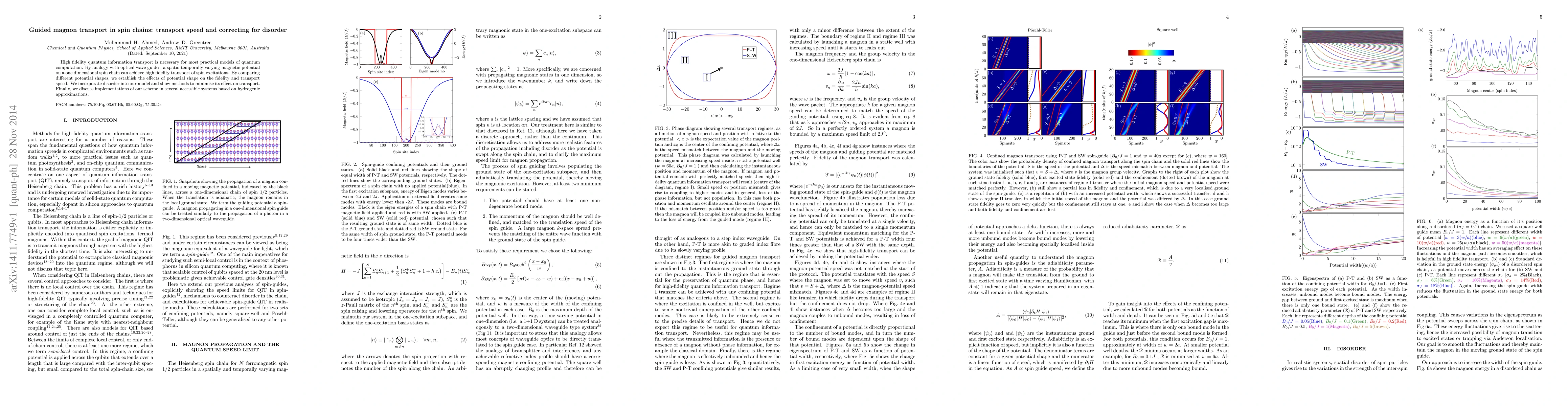 High fidelity quantum information transport is necessary for most practical models of quantum computation. By analogy with optical wave guides, a spatio-temporally varying magnetic potential on a one dimensional spin chain can achieve high fidelity transport of spin excitations. By comparing different potential shapes, we establish the effects of potential shape on the fidelity and transport speed. We incorporate disorder into our model and show methods to minimise its effect on transport. Finally, we discuss implementations of our scheme in several accessible systems based on hydrogenic approximations.