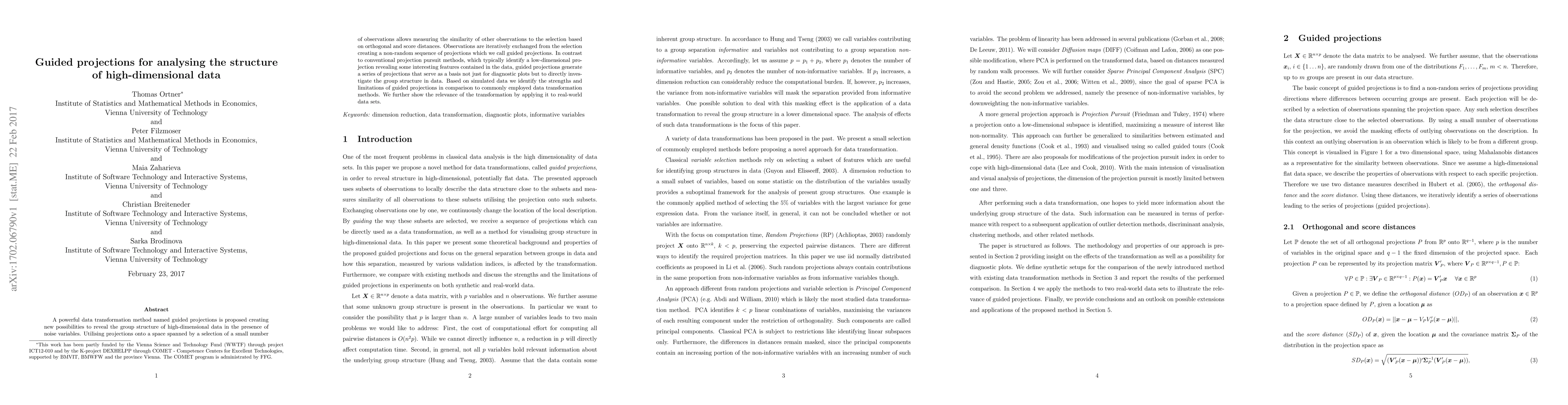 Guided projections analyze high-dimensional data by iteratively exchanging observations to reveal group structure, offering a new method for investigating data organization. This approach generates multiple orthogonal projections that can be used for diagnostic plots and direct investigation of group structure in data.