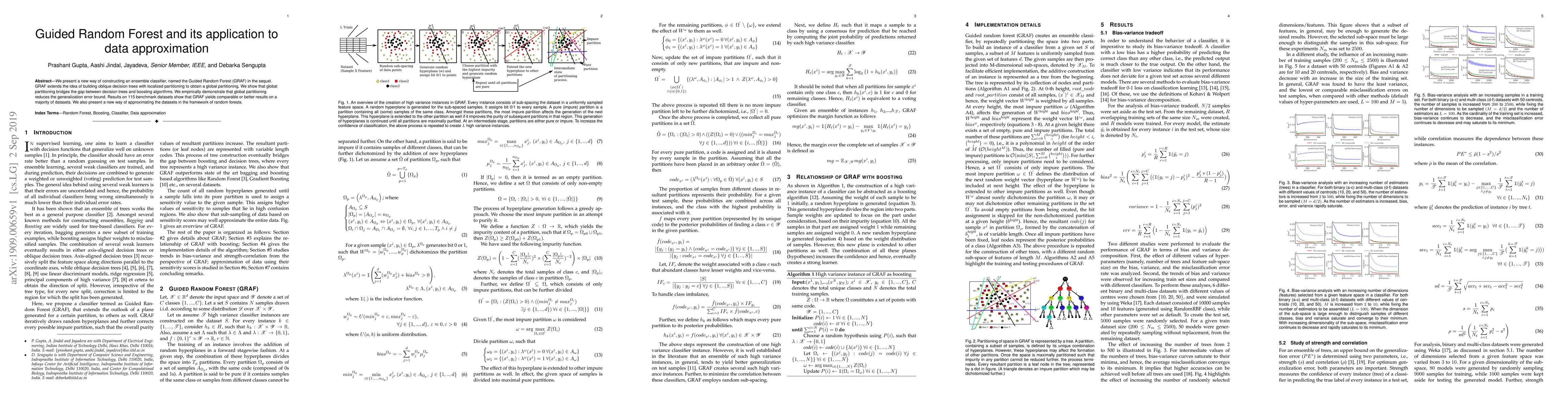 The Guided Random Forest (GRAF) is an ensemble classifier that combines localized partitioning in decision trees with global partitioning to bridge the gap between decision trees and boosting algorithms, showing reduced generalization error and comparable or better performance on benchmark datasets. Additionally, GRAF introduces a novel method for data approximation within the framework of random forests.
