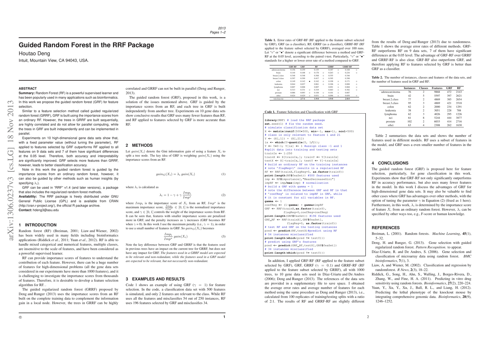 A new feature selection method called Guided Random Forest (GRF) improves classification accuracy and interpretability by selecting relevant features for Random Forest models.