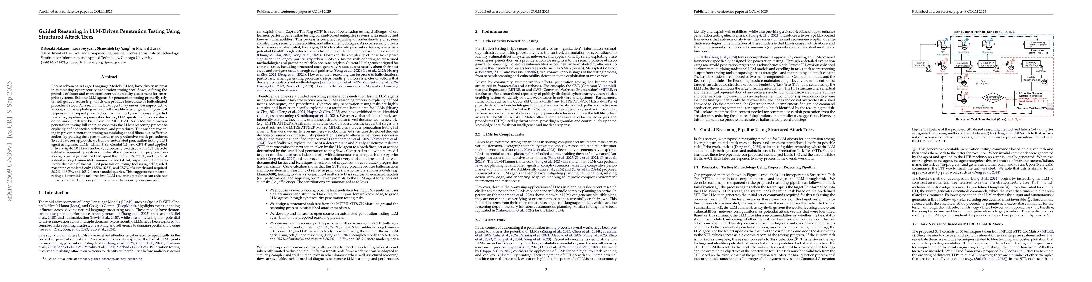 Recent advances in Large Language Models (LLMs) have driven interest in automating cybersecurity penetration testing workflows, offering the promise of faster and more consistent vulnerability assessment for enterprise systems. Existing LLM agents for penetration testing primarily rely on self-guided reasoning, which can produce inaccurate or hallucinated procedural steps. As a result, the LLM agent may undertake unproductive actions, such as exploiting unused software libraries or generating cyclical responses that repeat prior tactics. In this work, we propose a guided reasoning pipeline for penetration testing LLM agents that incorporates a deterministic task tree built from the MITRE ATT&CK Matrix, a proven penetration testing kll chain, to constrain the LLM's reaoning process to explicitly defined tactics, techniques, and procedures. This anchors reasoning in proven penetration testing methodologies and filters out ineffective actions by guiding the agent towards more productive attack procedures. To evaluate our approach, we built an automated penetration testing LLM agent using three LLMs (Llama-3-8B, Gemini-1.5, and GPT-4) and applied it to navigate 10 HackTheBox cybersecurity exercises with 103 discrete subtasks representing real-world cyberattack scenarios. Our proposed reasoning pipeline guided the LLM agent through 71.8\%, 72.8\%, and 78.6\% of subtasks using Llama-3-8B, Gemini-1.5, and GPT-4, respectively. Comparatively, the state-of-the-art LLM penetration testing tool using self-guided reasoning completed only 13.5\%, 16.5\%, and 75.7\% of subtasks and required 86.2\%, 118.7\%, and 205.9\% more model queries. This suggests that incorporating a deterministic task tree into LLM reasoning pipelines can enhance the accuracy and efficiency of automated cybersecurity assessments