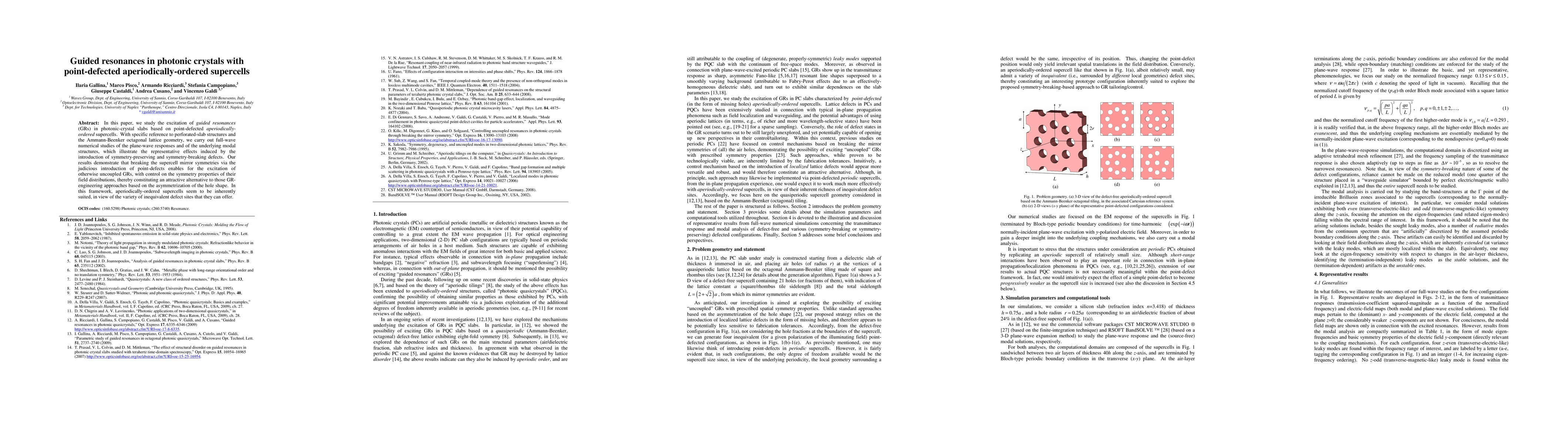 Researchers discovered a way to control guided resonances in photonic crystals with point-defects, offering an alternative to existing GR-engineering methods. This breakthrough utilizes aperiodically-ordered supercells to create unique defect sites that enhance the symmetry properties of the resonances.