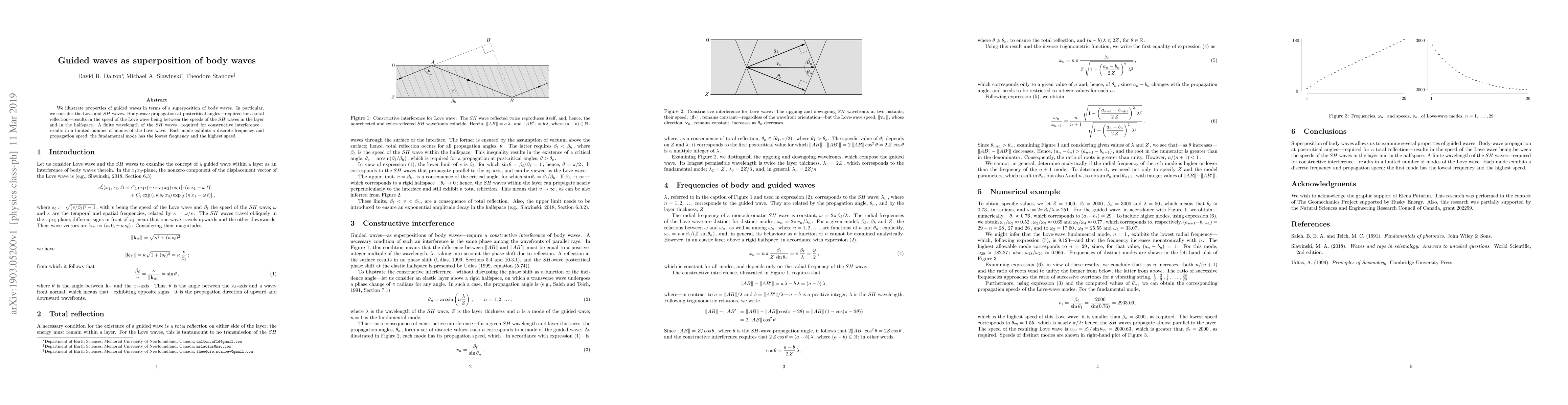 Research shows that guided waves can be understood as a superposition of body waves, with specific conditions for total reflection and constructive interference resulting in discrete frequency modes.
