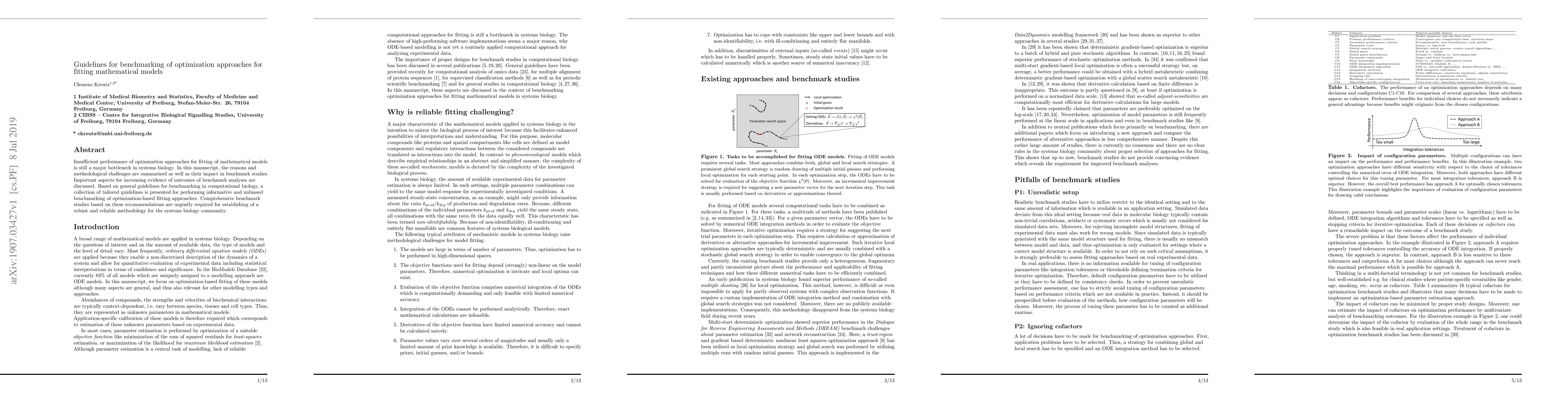 Benchmarking optimization approaches for fitting mathematical models is crucial in systems biology to improve performance, but methodological challenges exist. A set of guidelines has been proposed to informative and unbiased benchmarking, highlighting the need for comprehensive studies.