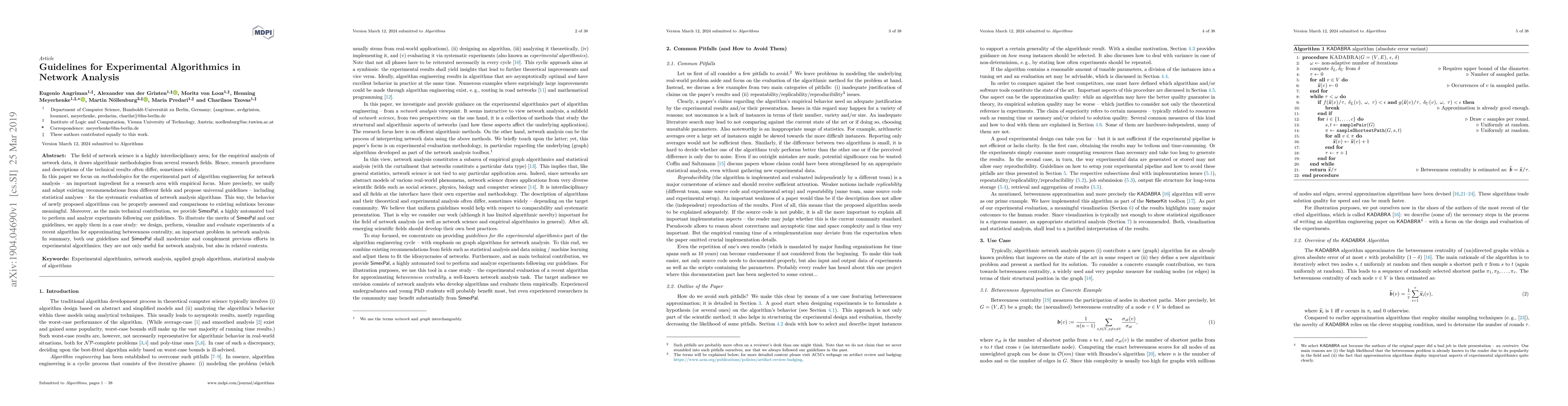 This paper proposes universal guidelines for the experimental evaluation of network analysis algorithms, aiming to standardize and improve the assessment of new algorithms. It introduces SimexPal, a tool to automate these guidelines, and demonstrates its application in evaluating an algorithm for approximating betweenness centrality.