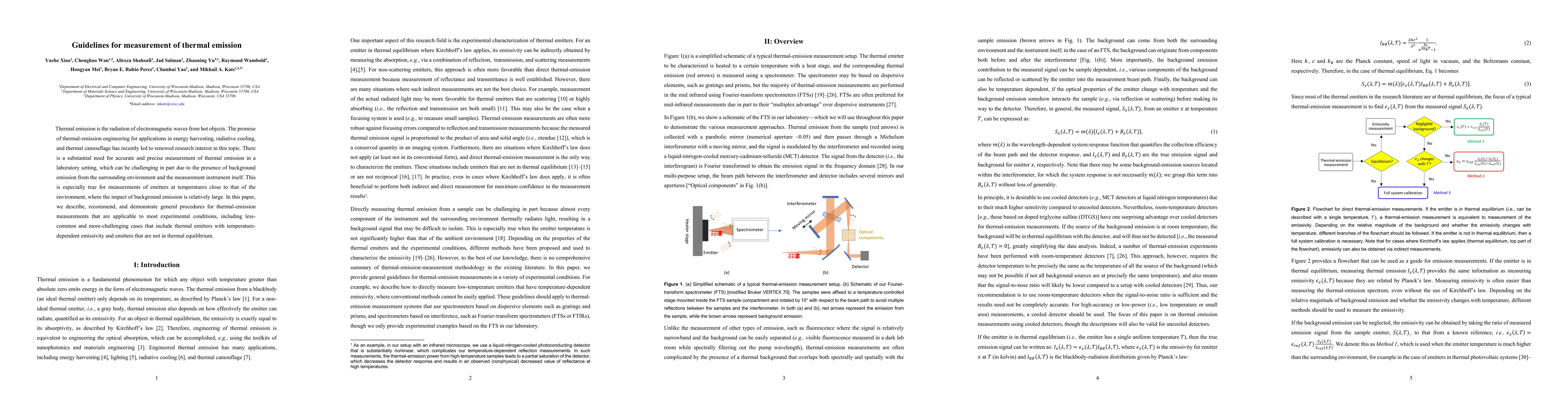 Thermal emission is the radiation of electromagnetic waves from hot objects. The promise of thermal-emission engineering for applications in energy harvesting, radiative cooling, and thermal camouflage has recently led to renewed research interest in this topic. There is a substantial need for accurate and precise measurement of thermal emission in a laboratory setting, which can be challenging in part due to the presence of background emission from the surrounding environment and the measurement instrument itself. This is especially true for measurements of emitters at temperatures close to that of the environment, where the impact of background emission is relatively large. In this paper, we describe, recommend, and demonstrate general procedures for thermal-emission measurements that are applicable to most experimental conditions, including less-common and more-challenging cases that include thermal emitters with temperature-dependent emissivity and emitters that are not in thermal equilibrium.