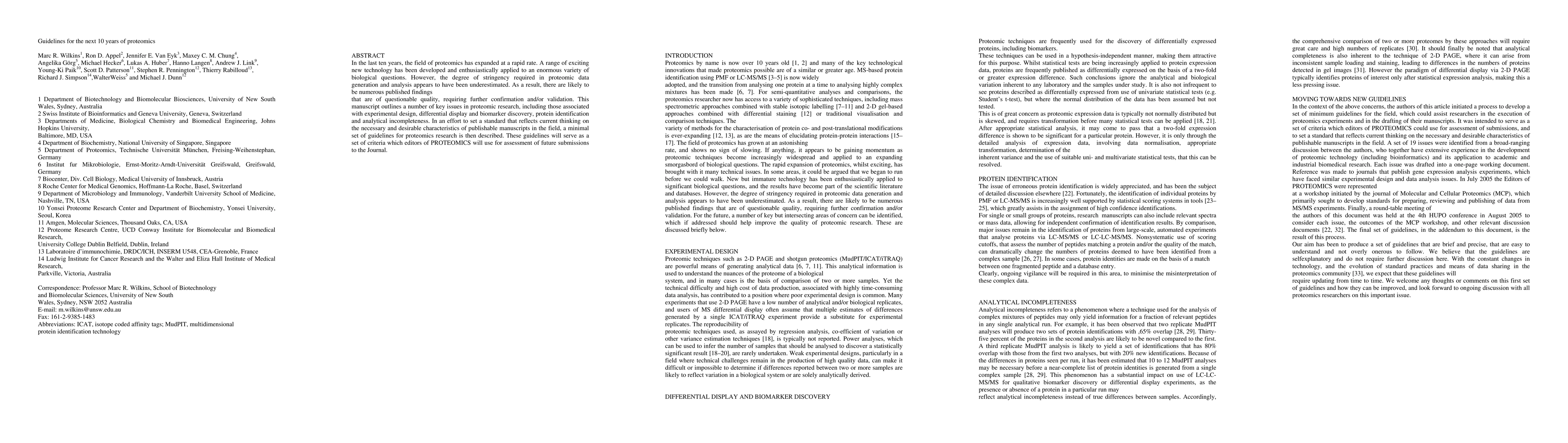 This paper discusses the rapid advancements in proteomics over the past decade and highlights the need for increased rigor in data generation and analysis to ensure quality. It proposes a set of guidelines for future proteomics research, aiming to improve experimental design, data validation, and overall manuscript standards for publication in the field.