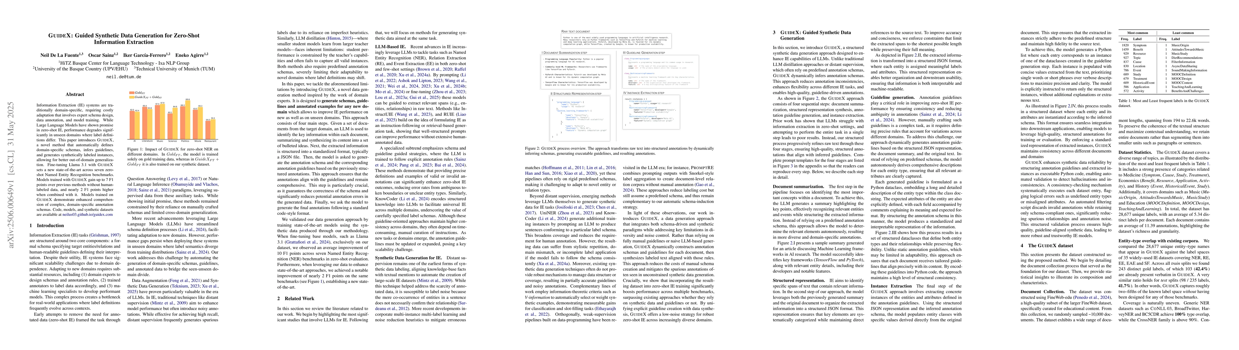 The paper introduces GUIDEX, a novel method for automatically defining domain-specific schemas, inferring guidelines, and generating synthetic labeled instances for zero-shot information extraction tasks, demonstrated using Llama 3.1 models.