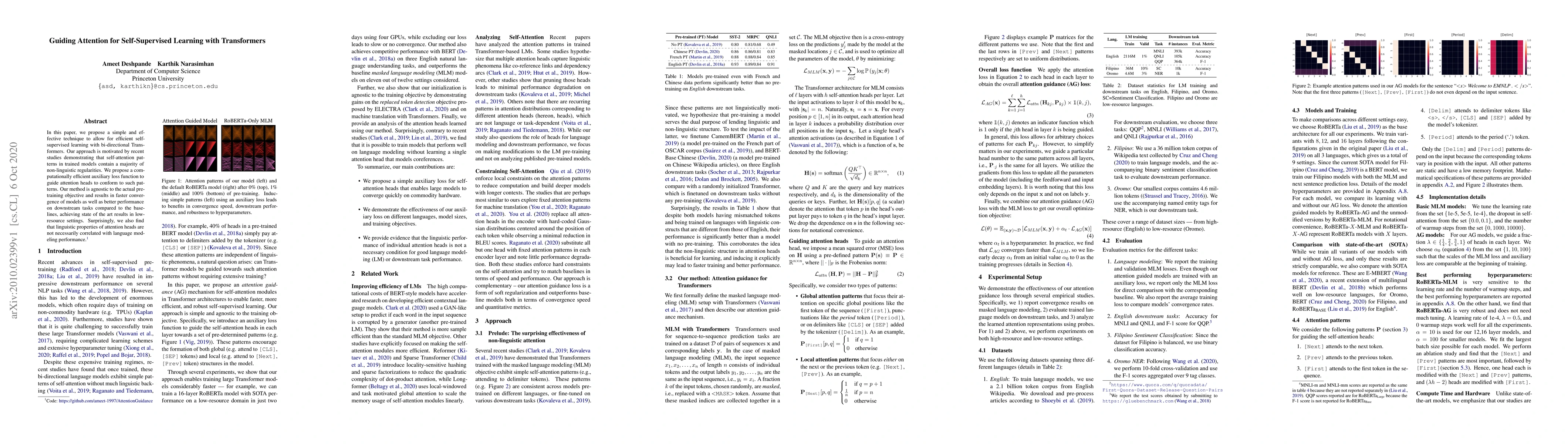 This paper introduces a new method to enhance self-supervised learning with Transformers by guiding attention heads to conform to non-linguistic regularities through an efficient auxiliary loss function. The proposed technique leads to faster convergence and better performance on downstream tasks, achieving state-of-the-art results in low-resource settings.