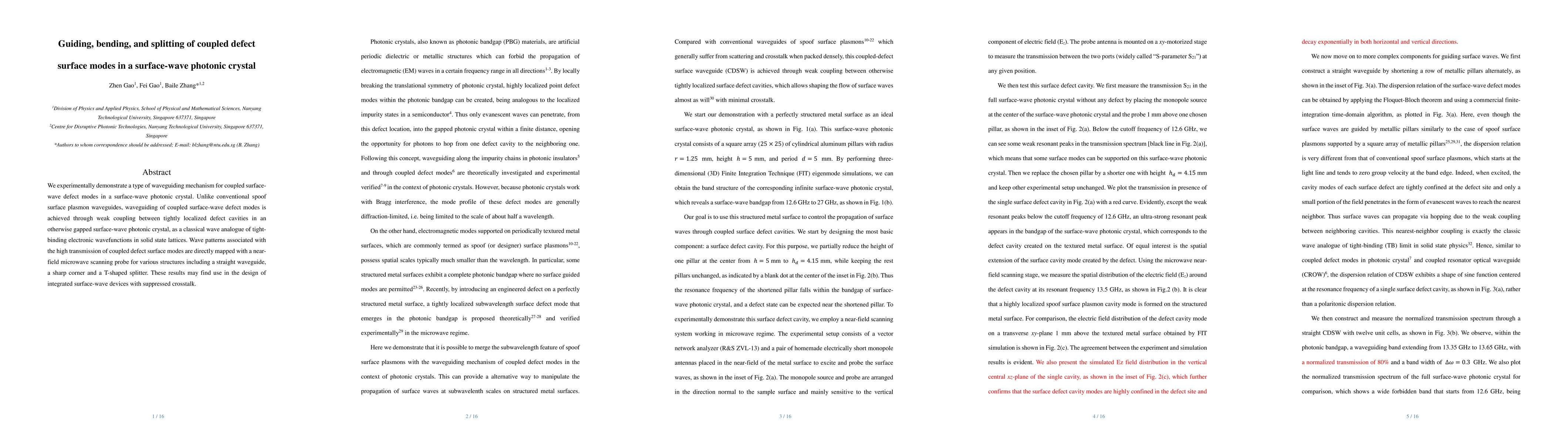 This paper demonstrates a novel waveguiding mechanism for coupled surface-wave defect modes in a photonic crystal, achieved through weak coupling between localized defect cavities, unlike conventional spoof surface plasmon waveguides. The approach serves as a classical wave analogue to tight-binding electronic wavefunctions in solid-state lattices.