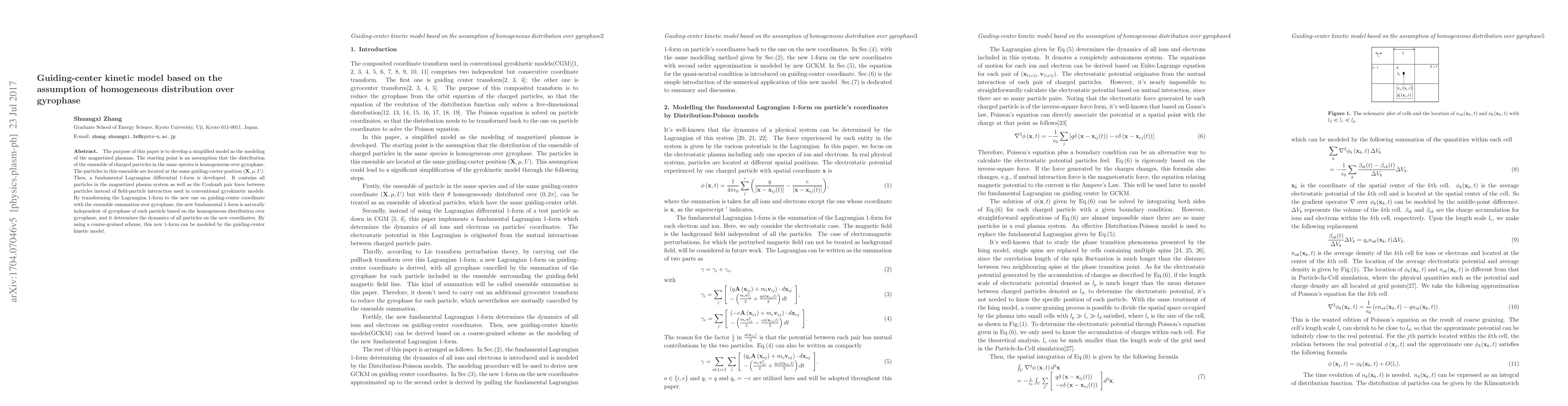 The purpose of this paper is to develop a simplified model as the modeling of the magnetized plasmas. The starting point is an assumption that the distribution of the ensemble of charged particles in the same species is homogeneous over gyrophase. The particles in this ensemble are located at the same guiding-cneter position $(\mathbf{X},\mu,U)$. Then, a fundamental Lagrangian differential 1-form is developed. It contains all particles in the magnetized plasma system as well as the Coulomb pair force between particles instead of field-particle interaction used in conventional gyrokinetic models. By transforming the Lagrangian 1-form to the new one on guiding-center coordinate with the ensemble summation over gyrophase, the new fundamental 1-form is naturally independent of gyrophase of each particle based on the homogeneous distribution over gyrophase, and it determines the dynamics of all particles on the new coordinates. By using a coarse-grained scheme, this new 1-form can be modeled by the guiding-center kinetic model.