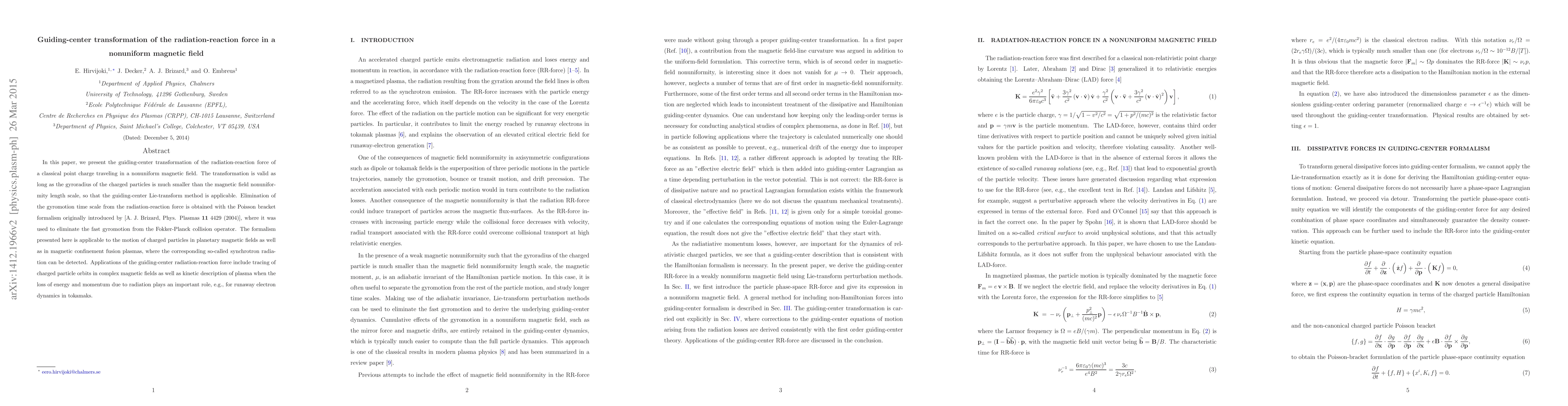This paper presents a guiding-center transformation of the radiation-reaction force for a classical point charge in a nonuniform magnetic field, using the Poisson bracket formalism to eliminate the gyromotion time scale. The method is applicable to charged particles in planetary and fusion plasma environments, aiding in the study of synchrotron radiation and runaway electron dynamics.