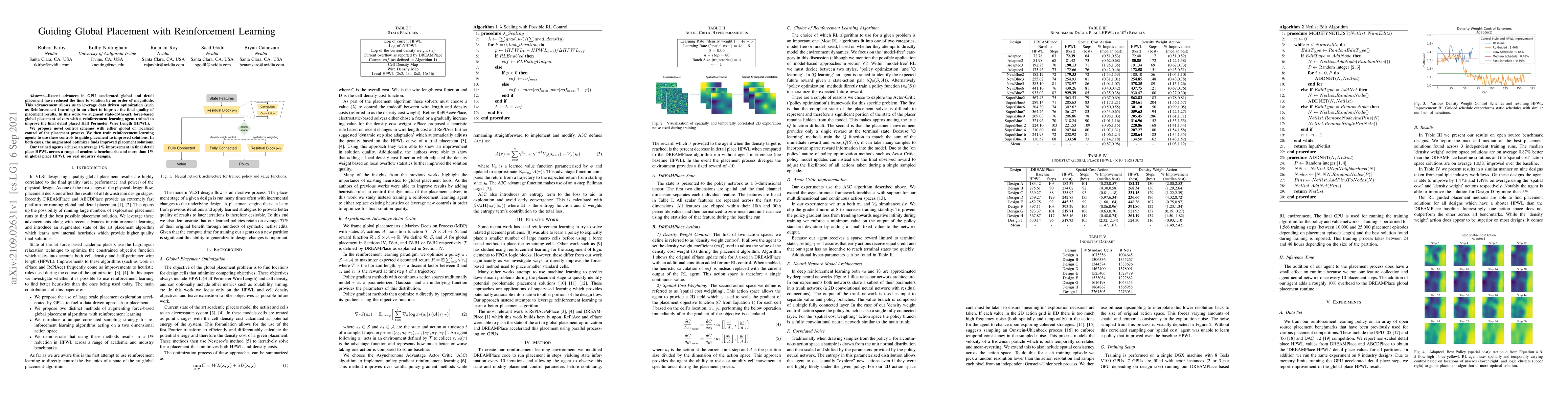 This paper proposes augmenting global placement solvers with reinforcement learning to improve Half Perimeter Wire Length (HPWL). The study introduces novel control schemes and trains RL agents to enhance both global and detailed placement, achieving up to 1% average improvement in detailed HPWL across benchmarks and more than 1% in industry designs.