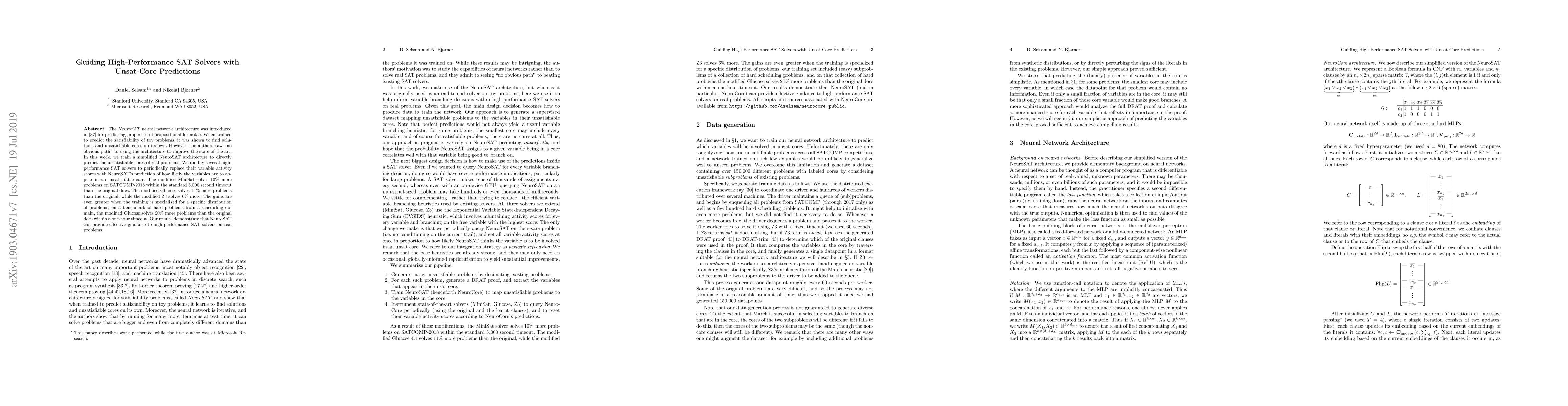 Researchers developed a neural network to predict unsatisfiable cores in SAT problems, improving performance of high-end solvers by 10-20% on real-world problems.