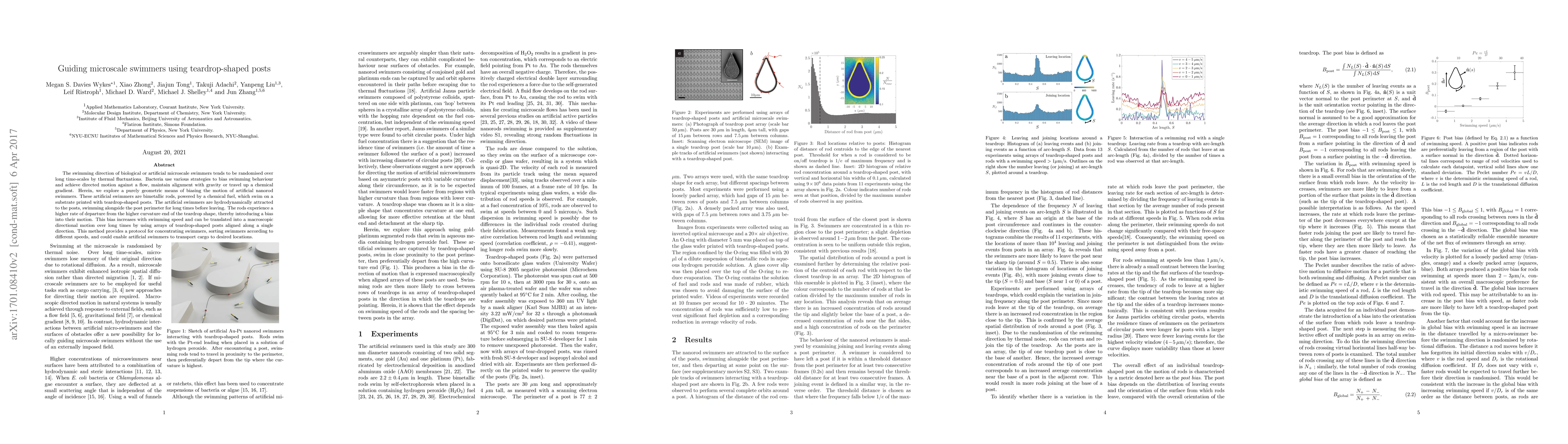 This paper investigates a geometric approach to guide artificial nanorod swimmers using teardrop-shaped posts on a substrate, which biases their motion by attracting them to the post perimeter. The swimmers, powered by chemical fuel, exhibit a higher departure rate from the higher curvature end, enabling macroscopic directional control over time.