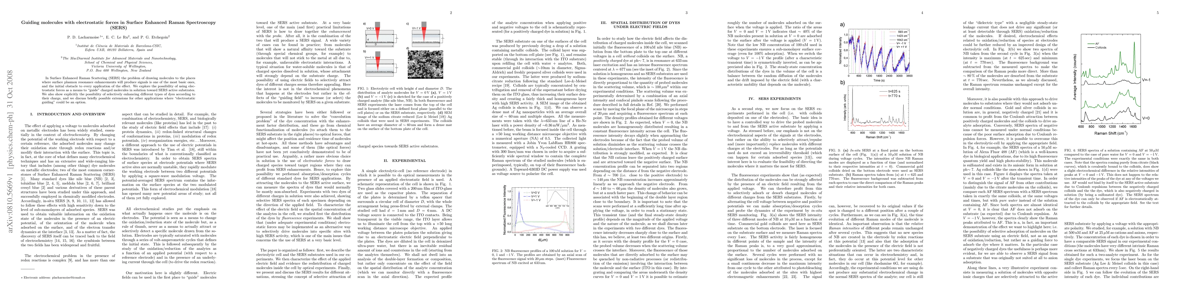 This research presents a novel method for guiding charged molecules to SERS active substrates using electrostatic forces, which could enhance SERS sensitivity and selectivity for various applications.