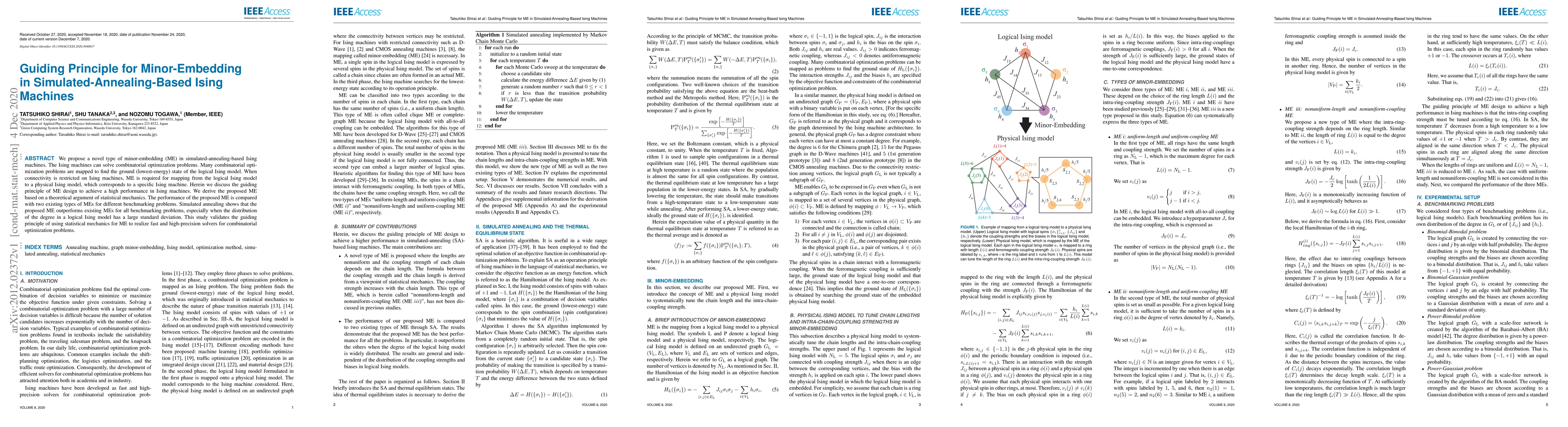We propose a novel type of minor-embedding (ME) in simulated-annealing-based Ising machines. The Ising machines can solve combinatorial optimization problems. Many combinatorial optimization problems are mapped to find the ground (lowest-energy) state of the logical Ising model. When connectivity is restricted on Ising machines, ME is required for mapping from the logical Ising model to a physical Ising model, which corresponds to a specific Ising machine. Herein we discuss the guiding principle of ME design to achieve a high performance in Ising machines. We derive the proposed ME based on a theoretical argument of statistical mechanics. The performance of the proposed ME is compared with two existing types of MEs for different benchmarking problems. Simulated annealing shows that the proposed ME outperforms existing MEs for all benchmarking problems, especially when the distribution of the degree in a logical Ising model has a large standard deviation. This study validates the guiding principle of using statistical mechanics for ME to realize fast and high-precision solvers for combinatorial optimization problems.