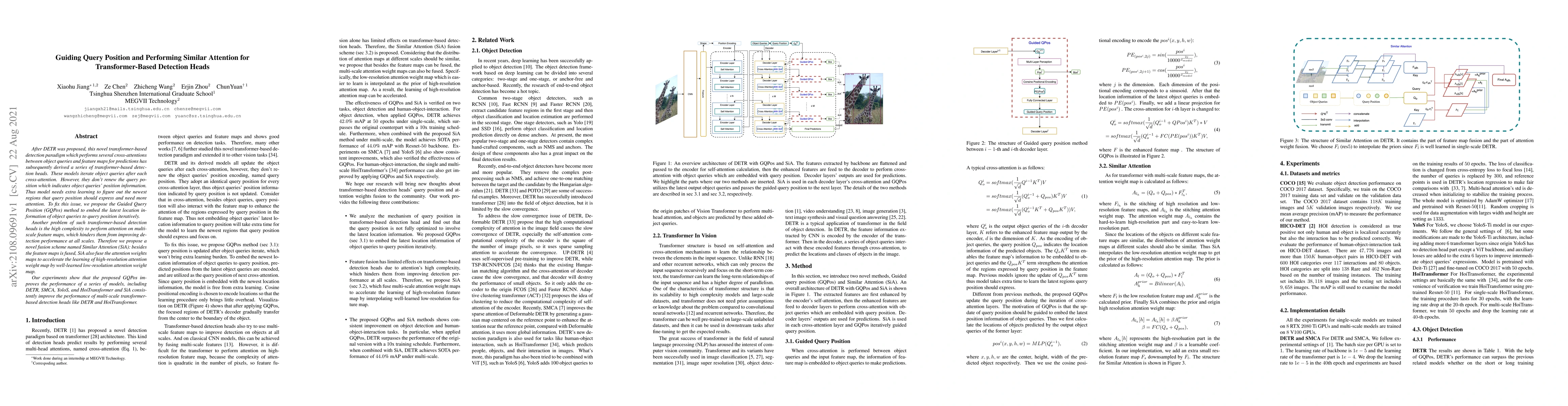 This paper proposes the Guided Query Position (GQPos) method to iteratively embed the latest location information of object queries in transformer-based detection models, addressing the issue of static query positions. It also introduces Similar Attention (SiA) to fuse attention weights across feature maps, enhancing multi-scale feature map processing and improving detection performance.