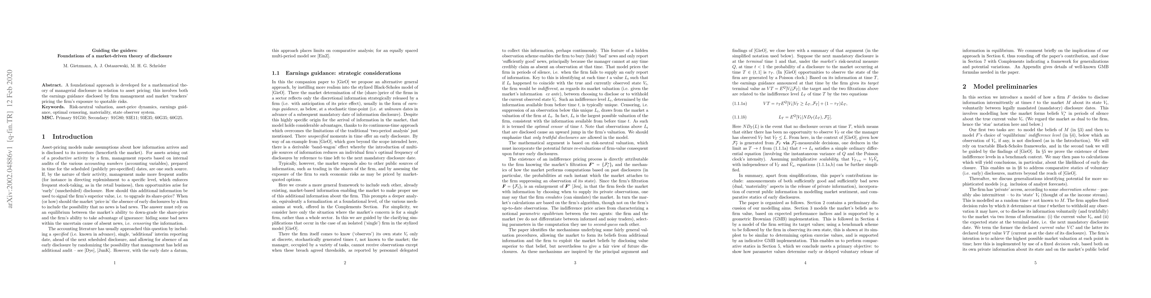 A foundational approach is developed for a mathematical theory of managerial disclosure in relation to asset pricing; this involves both the earnings guidance disclosed by firm management and market `trackers' pricing the firm's exposure to quotable risks.