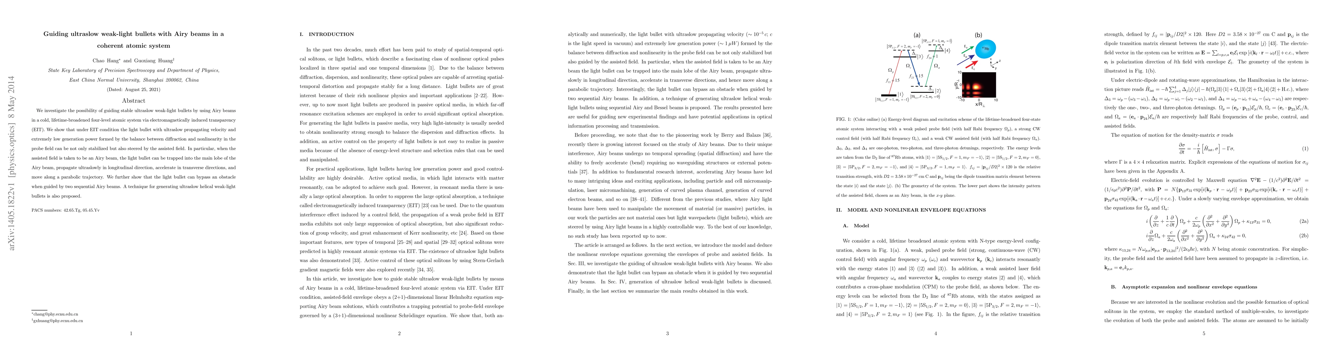This paper explores the guidance of ultraslow weak-light bullets using Airy beams in a coherent atomic system via electromagnetically induced transparency (EIT). The study demonstrates that these light bullets can be stabilized, steered, and even bypass obstacles using Airy beams, achieving ultraslow propagation and helical motion.