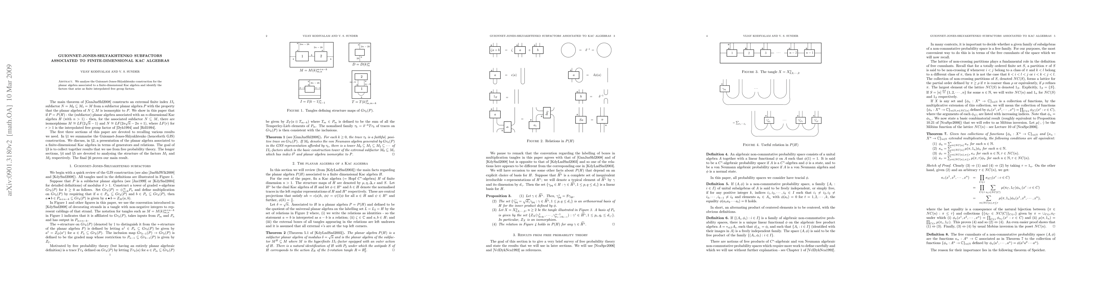 This paper examines the Guionnet-Jones-Shlyakhtenko construction for planar algebras linked to finite-dimensional Kac algebras, identifying the resulting finite interpolated free group factors.