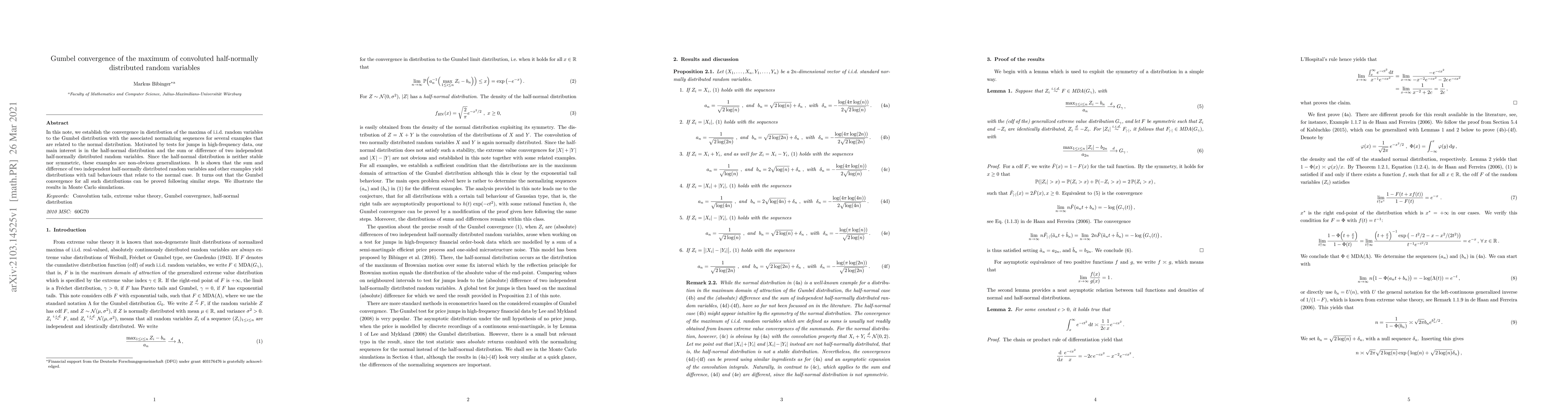 This paper establishes the Gumbel convergence of the maxima of independent and identically distributed (i.i.d.) half-normally distributed random variables, including their sums and differences, to the Gumbel distribution. The results are demonstrated through Monte Carlo simulations, highlighting non-obvious generalizations beyond the symmetric normal distribution.
