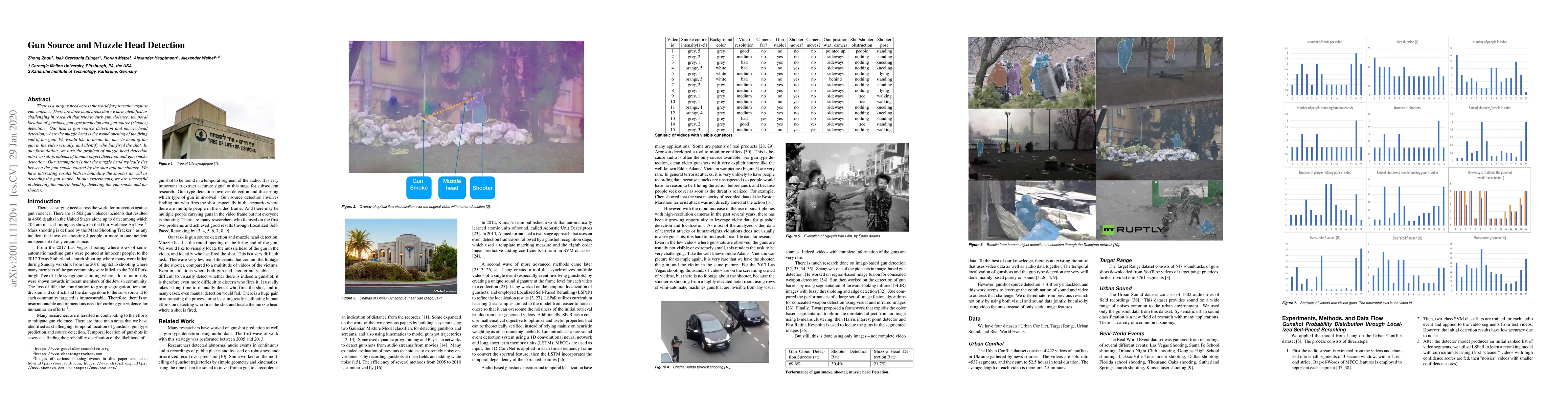 There is a surging need across the world for protection against gun violence. There are three main areas that we have identified as challenging in research that tries to curb gun violence: temporal location of gunshots, gun type prediction and gun source (shooter) detection. Our task is gun source detection and muzzle head detection, where the muzzle head is the round opening of the firing end of the gun. We would like to locate the muzzle head of the gun in the video visually, and identify who has fired the shot. In our formulation, we turn the problem of muzzle head detection into two sub-problems of human object detection and gun smoke detection. Our assumption is that the muzzle head typically lies between the gun smoke caused by the shot and the shooter. We have interesting results both in bounding the shooter as well as detecting the gun smoke. In our experiments, we are successful in detecting the muzzle head by detecting the gun smoke and the shooter.