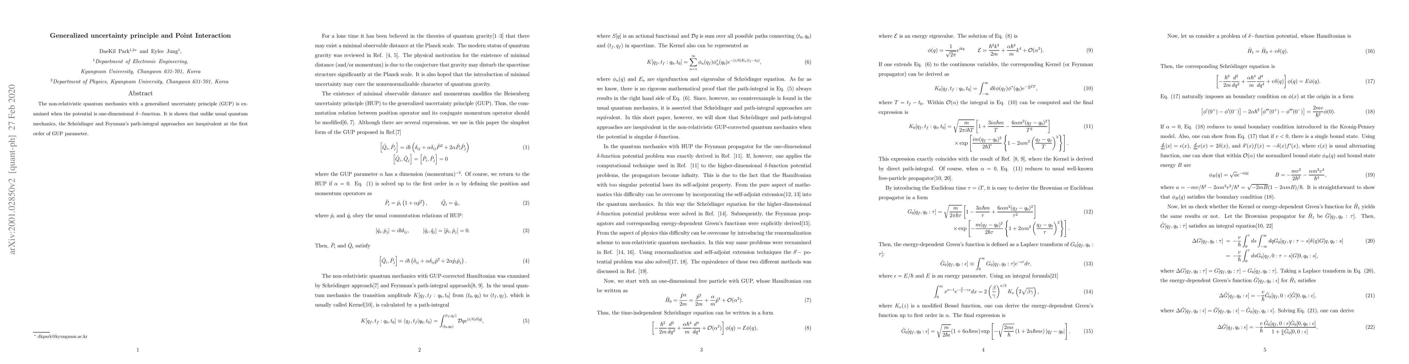 This paper investigates non-relativistic quantum mechanics incorporating the generalized uncertainty principle (GUP) with a one-dimensional $\delta-$function potential. It reveals that the Schrödinger and Feynman's path-integral formulations diverge at the first order of the GUP parameter, unlike standard quantum mechanics.