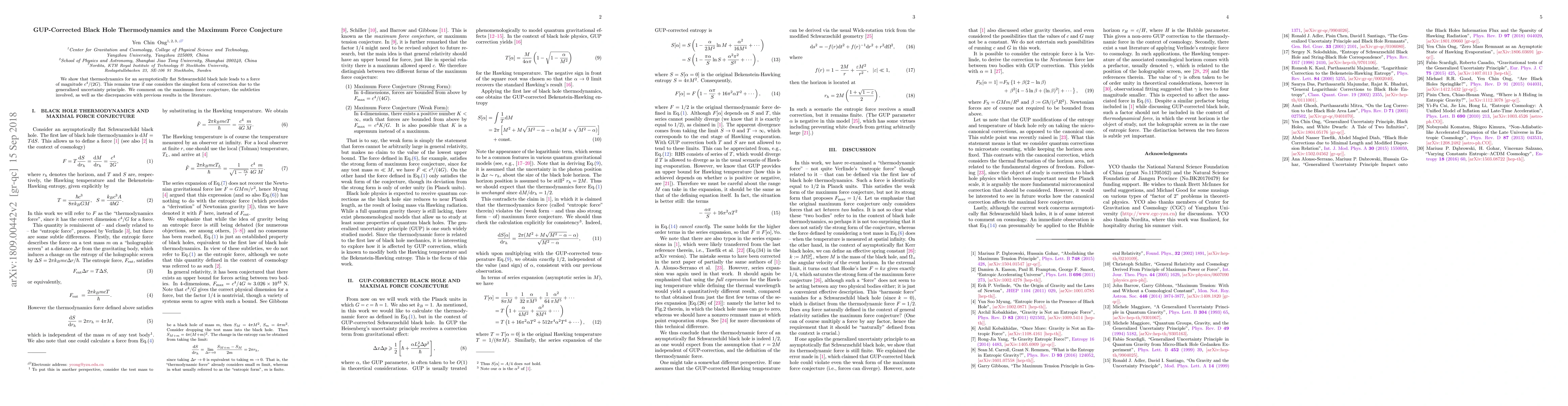 Research confirms that a black hole's force is up to $c^4/(2G)$ in thermodynamic calculations, even with the simplest form of correction from the generalized uncertainty principle.