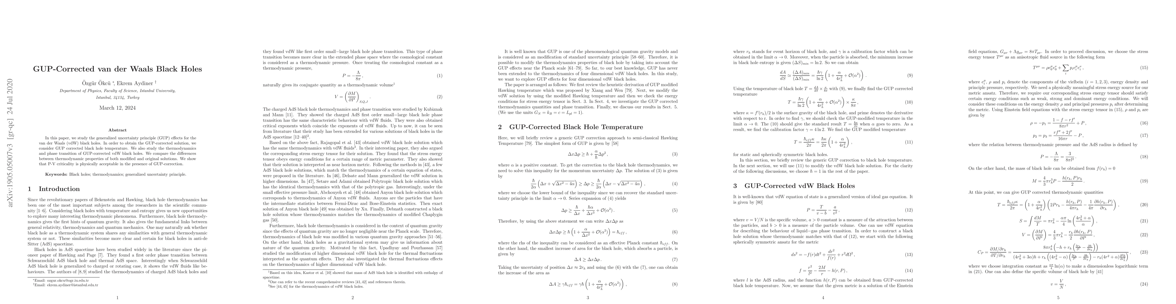 This paper investigates the generalized uncertainty principle (GUP) effects on van der Waals black holes, deriving a GUP-corrected temperature and examining their thermodynamics and phase transitions. It concludes that P-V criticality remains valid under GUP-corrected conditions, contrasting modified and original solutions.